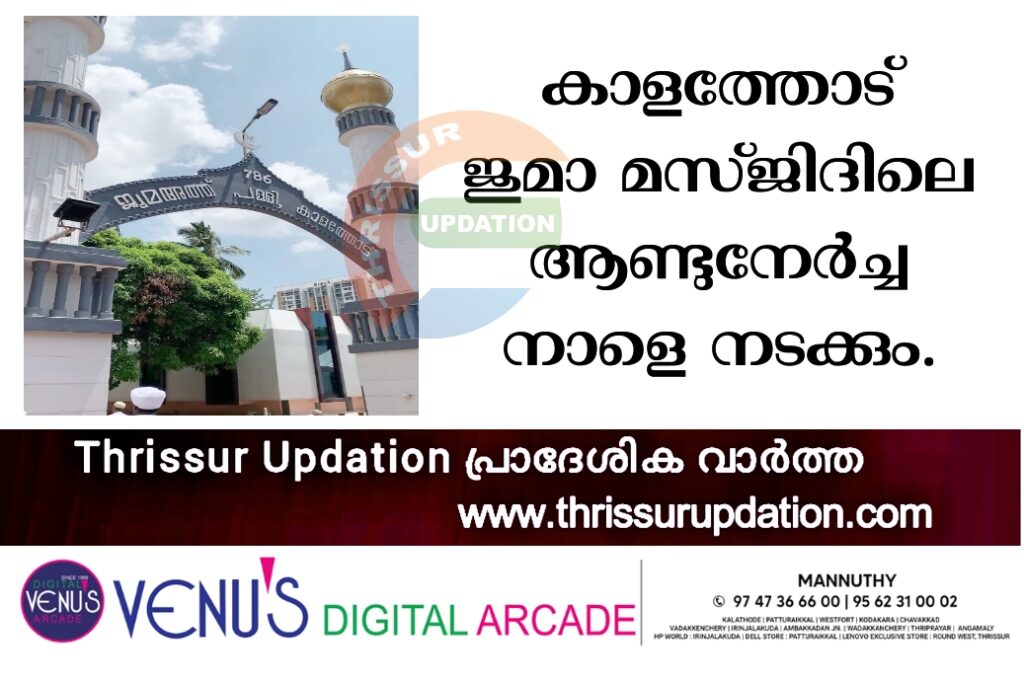 കാളത്തോട് കമ്മുകുട്ടി മുസ്ലിയാർ (ന:മ) 69-ാം ആണ്ടുനേർച്ചയും ദീനി വിഞ്ജാന സദസ്സും 2024 ജനുവരി 1, 2, 3 (തിങ്കൾ, ചൊവ്വ, ബുധൻ) തിയ്യതികളിൽ നടക്കുന്നു. നാളെ (03/01/2024 ) ബുധൻ അന്നദാനം , സ്ത്രീകൾക്ക് പ്രത്യേക സൗകര്യം ഉണ്ടായിരിക്കുന്നതാണ്. പ്രധാനമന്ത്രിയുടെ റോഡ് ഷോ ഉള്ളതിനാൽ നേർച്ചയോടനുബന്ധിച്ചുള്ള ഭക്ഷണ വിതരണം രാവിലെ 6 മുതൽ 9 വരെ മൂന്നു മണിക്കൂറായി ക്രമീകരിച്ചിട്ടുണ്ട്. കാളത്തോട് മെയിൻ റോഡ് കർശന പൊലീസ് നിയന്ത്രണത്തിൽ ആയതിനാൽ നിശ്ചിത സമയത്തു തന്നെ നേർച്ചഭക്ഷണം വാങ്ങിക്കണമെന്നു ഭാരവാഹികൾ അറിയിച്ചു.