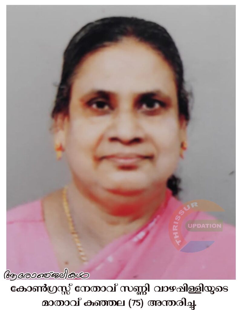മണ്ണുത്തി വാഴപ്പിള്ളി ജോസഫ് ഭാര്യ കുഞ്ഞല (75) അന്തരിച്ചു. സംസ്കാരം ഇന്ന് (03-01-2024 ബുധൻ) വൈകീട്ട് 5 മണിക്ക് മണ്ണുത്തി സെന്റ് ആന്റണീസ് പള്ളിയിൽ.