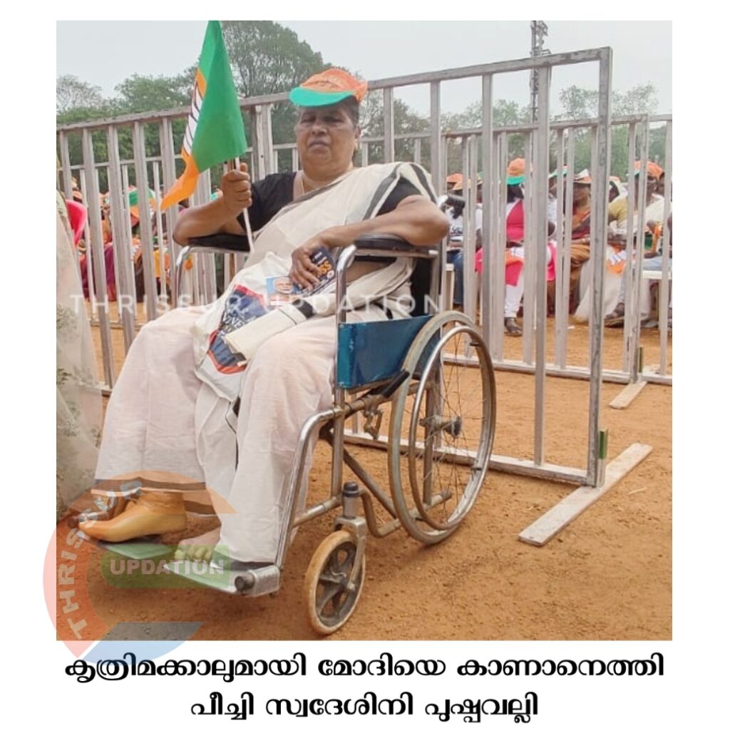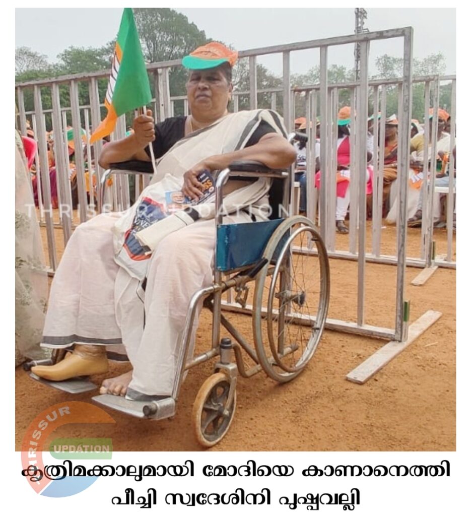 പ്രധാനമന്ത്രിയുടെ പദ്ധതിവഴി കൃത്രിമക്കാൽ ലഭിച്ച 62 വയസ്സുകാരി പുഷ്പവല്ലി ഹൃദയം നിറഞ്ഞ നന്ദിയോടെ മോദിയെ കാണാനെത്തി. കൃത്രിമക്കാൽ ലഭിച്ചതു മുതലുള്ള ആഗ്രഹമാണു നിറവേറിയത്. പീച്ചി സ്വദേശിനിയായ പുഷ്പവല്ലിയുടെ കാൽ 5 വർഷം മുൻപാണു മുറിച്ചു മാറ്റിയത്.