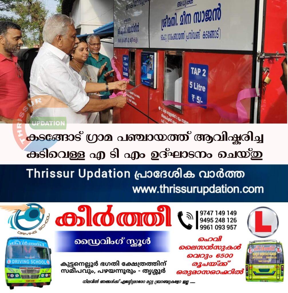 വാട്ടർ എടിഎം എ സി മെയ്തീൻ എം എൽ എ ഉദ്ഘാടനം ചെയ്തു.ഗ്രാമ പഞ്ചായത്ത് പ്രസിഡന്റ് മീന സാജൻ അധ്യക്ഷയായി.ചൊവ്വന്നൂർ ബ്ലോക്ക് പഞ്ചായത്ത് അംഗം കെ കെ മണി മുഖ്യാതിഥിയായി. ഗ്രാമ പഞ്ചായത്ത് വെെസ് പ്രസിഡന്റ് പി എസ് പുരുഷോത്തമൻ ,