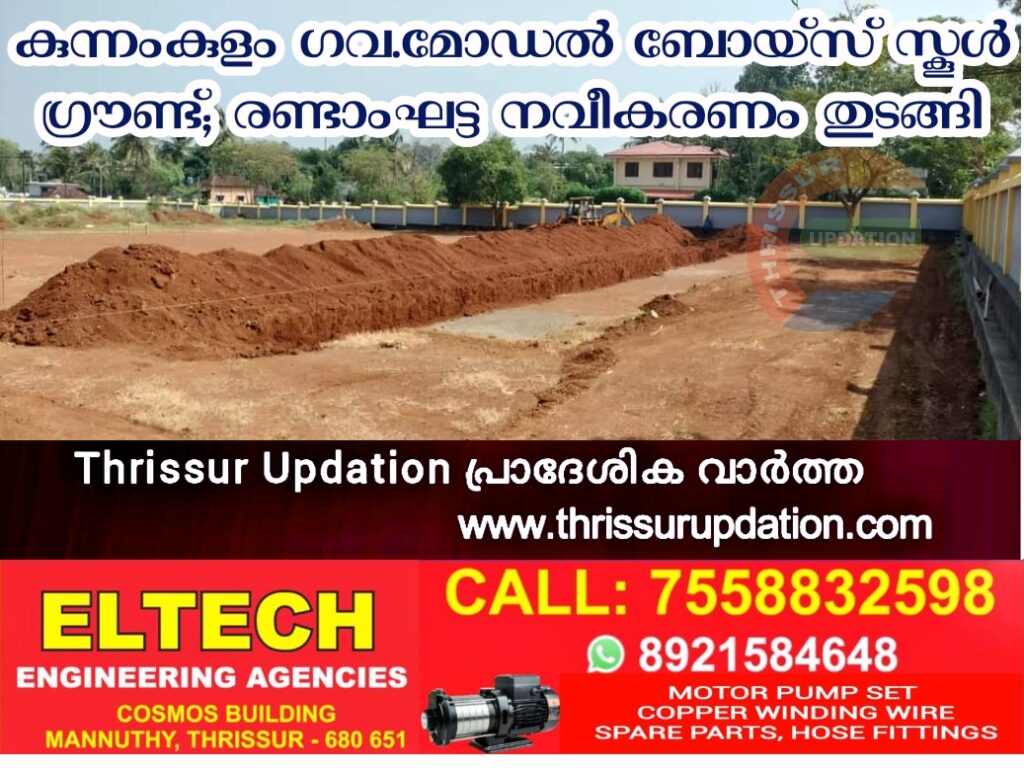 വിദ്യാർഥികളുടെ കായിക സ്വപ്നങ്ങൾക്ക് ഉണർവേകി കുന്നംകുളം ഗവ.മോഡൽ ബോയ്സ് സ്കൂൾ ഗ്രൗണ്ടിൽ 69.83 ലക്ഷം രൂപ വിനിയോഗിച്ചുള്ള രണ്ടാം ഘട്ട നവീകരണ പ്രവർത്തനങ്ങൾക്ക് തുടക്കമായി. ഗ്രൗണ്ടിന്റെ ലെവലിംഗ്, 15 സെന്റീമീറ്റർ കനത്തിൽ ഗ്രൗണ്ട് സോഫ്റ്റ് ലയർ, ഡ്രയിനേജ്, ബോൾ പുറത്ത് പോകാതിരിക്കാൻ 8 മീറ്റർ ഉയരത്തിൽ ഫെൻസിംഗ്, ക്രിക്കറ്റ് പിച്ച് എന്നീ പ്രവൃത്തികളാണ് രണ്ടാം ഘട്ടത്തിൽ നടത്തുക. ഇതോടെ ഗ്രൗണ്ടിൽ മഡ് ഫുട്ബോൾ കോർട്ടിനും ക്രിക്കറ്റ് നെറ്റ് പ്രാക്ടീസിനുമായി സൗകര്യമൊരുങ്ങും. കൂടാതെ ദൈനംദിന പരിശീലനം നടത്താനും കബഡി, ഖൊ ഖൊ, വോളിബോൾ തുടങ്ങീ കായിക ഇനങ്ങൾ നടത്താനും കഴിയും. മഴക്കാലത്ത് നാച്വറൽ ടറഫിലെ പ്രാക്ടീസ് ഗവ.മോഡൽ ബോയ്സ് സ്കൂൾ ഗ്രൗണ്ടിലേക്ക് മാറ്റാം.