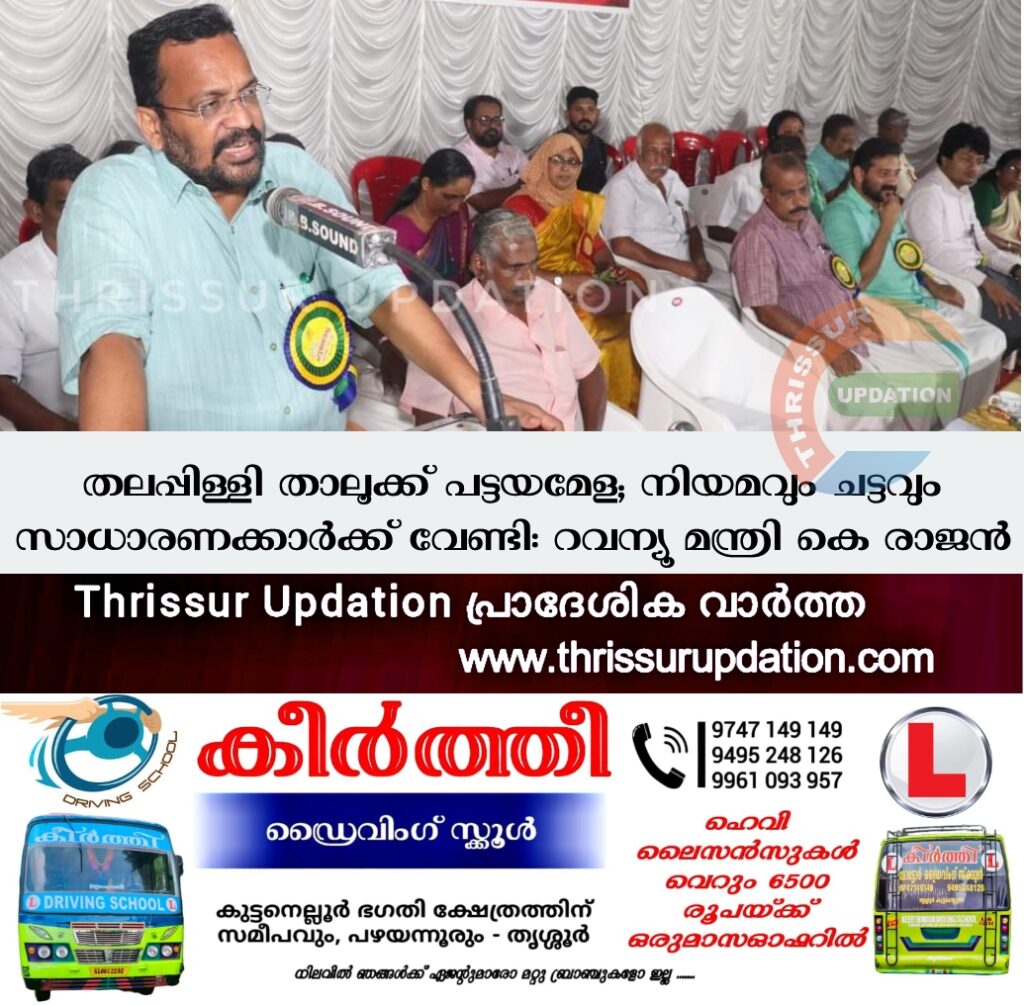 നിയമങ്ങളും ചട്ടങ്ങളുമെല്ലാം സാധാരണക്കാർക്ക് അനുകൂലമായി എങ്ങനെ ഉപയോഗപ്പെടുത്തണം എന്നതിന്റെ മികച്ച മാതൃകയാണ് തെലുങ്കർ കോളനിയിൽ പട്ടയ വിതരണമെന്ന് റവന്യൂ- ഭവന നിർമ്മാണ വകുപ്പ് മന്ത്രി കെ രാജൻ. തലപ്പിള്ളി താലൂക്ക് പട്ടയമേള ഉദ്ഘാടനം ചെയ്ത് സംസാരിക്കുകയായിരുന്നു മന്ത്രി. പാർശ്വവൽകൃത വിഭാഗത്തെ സർക്കാർ എക്കാലവും ചേർത്ത് പിടിക്കും. പട്ടയ അസംബ്ലികൾ ചേർന്ന് മണ്ഡലത്തിലെ എല്ലാ ഗുണഭോക്താക്കൾക്കും രേഖ ഉറപ്പാക്കി വരികയാണ്. എല്ലാ അതിദരിദ്രർക്കും ഭൂമി നൽകിയ ആദ്യ ജില്ലയായി ഇടുക്കി മാറിയെന്നും മറ്റു ജില്ലകളും അതിവേഗം ഈ നേട്ടം കൈവരിക്കുമെന്നും മന്ത്രി പറഞ്ഞു.