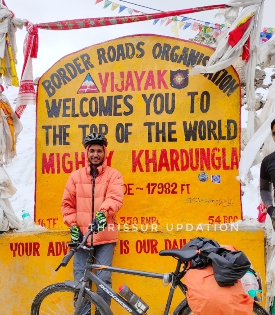 തൃശൂർ വഴുക്കുമ്പാറ ശ്രീ നാരായണ ഗുരു കോളേജ് ഓഫ് അഡ്വാൻസ്ഡ് സ്റ്റഡീസിലെ BTTM മൂന്നാം വർഷ വിദ്യാർത്ഥിയായ മുഹമ്മദ് സുൾഫിക്കർ ഗിയർ ഇല്ലാത്ത സൈക്കിളിൽ അഖിലേന്ത്യാ പര്യടനം നടത്തി. 4000 കിലോമീറ്റർ 38 ദിവസം കൊണ്ട് സഞ്ചരിച്ച് തിരിച്ചെത്തിയിരിക്കയാണ് പാലക്കാട് വടക്കഞ്ചേരി വള്ളിയോട് സ്വദേശിയായ സുൾഫിക്കർ. ഇന്ത്യയിലെ വിവിധ ഭാഗങ്ങളിലൂടെ സഞ്ചരിച്ച് ലഡാക്കിലെ ലോകത്തിലെ ഏറ്റവും ഉയരത്തിലുള്ള (17982 അടി) ഗതാഗത പാതയായ ഖാർതുഗ്ള പാസ്സ് കീഴടക്കിയാണ് കോളേജിന്റെ അഭിമാനമായത്. മെയ് 21ന് തുടങ്ങിയ യാത്ര കാസർഗോഡ് വഴി കർണ്ണാടക, ഗോവ, മഹാരാഷ്ട്ര, ഗുജറാത്ത്, രാജസ്ഥാൻ, ഹരിയാന, ഡൽഹി, പഞ്ചാബ്, ജമ്മു കാശ്മീർ വഴി ലഡാക്കിലെത്തി. ഗുജറാത്തിൽ വെച്ച് ഭക്ഷ്യവിഷബാധ ഉണ്ടായി. കൈയ്യിൽ കരുതിയ മരുന്ന് കഴിച്ച് രണ്ടു ദിവസം ആ നാട്ടുകാർ ഒരുക്കിയ വീട്ടിൽ വിശ്രമിച്ചു. ഭേദമായ ശേഷമാണ് യാത്ര തുടർന്നത്. ഡൽഹിയിലും ഭക്ഷണം മൂലം ചെറിയ പ്രശ്നങ്ങൾ ഉണ്ടായെങ്കിലും യാത്രയെ കാര്യമായി ബാധിച്ചില്ല. ഒരു ദിവസം കൊണ്ടു തന്നെ സുഖപ്പെട്ടു. ലഡാക്കിൽ നിന്ന് 40 കിലോമീറ്റർ കുത്തനെയുള്ള കയറ്റം കയറി ജൂൺ 21 ന് ഖാർതുഗ്ള പാസ്സിലെത്തി ലക്ഷ്യം നേടിയത്. ഒറ്റക്കായിരുന്നു യാത്ര.