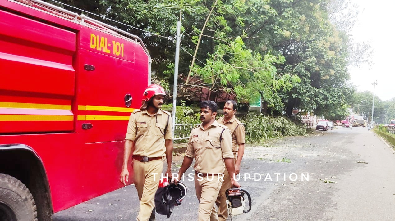 തൃശ്ശൂർ രമനിലയം കോമ്പൗണ്ട് നിന്ന മരം മതിൽ പൊളിഞ്ഞു റോഡിലേക്ക് ചെരിഞ്ഞ് ഒരു ഭാഗത്തെ ഗതാഗതം തടസ്സപ്പെട്ടും തുടർന്ന് ഫയർഫോഴ്സ് എത്തി മരം മുറിച്ചു മാറ്റി പുനഃസ്ഥാപിച്ചു