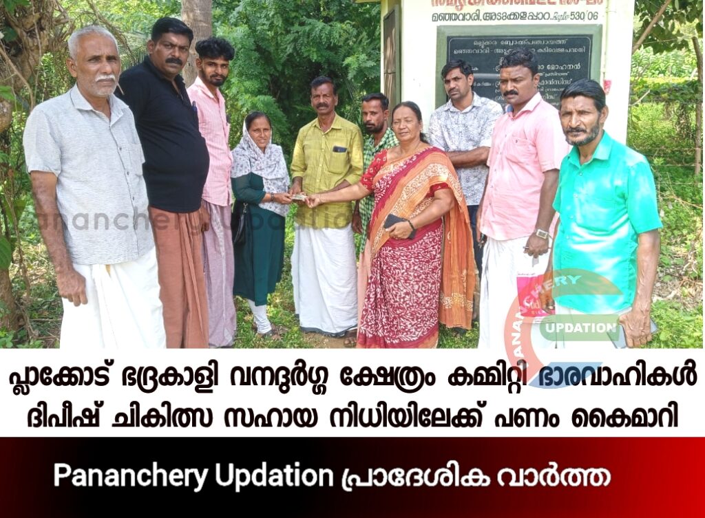 പ്ലാക്കോട് ഭദ്രകാളി വനദുർഗ്ഗ ക്ഷേത്രം കമ്മിറ്റി ഭാരവാഹികൾ ദിപീഷ് ചികിത്സ സഹായത്തിലേക്ക് 10,000 രൂപ സൗഹൃദ കൂട്ടായ്മ പ്രവർത്തകർക്ക്