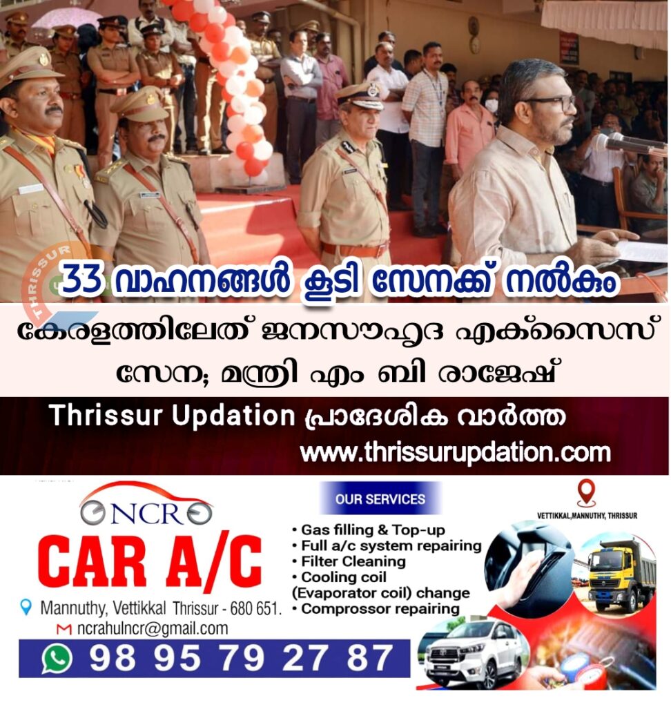തൃശൂരിലെ സംസ്ഥാന എക്സൈസ് അക്കാദമി ആന്ഡ് റിസര്ച്ച് സെന്റര് പരേഡ് ഗ്രൗണ്ടില് നടന്ന ചടങ്ങില് എക്സൈസ് കമ്മീഷണര് മഹിപാല് യാദവ് സേനാംഗങ്ങളുടെ അഭിവാദ്യം സ്വീകരിച്ചു. സിറ്റി പോലീസ് കമ്മീഷണര് അങ്കിത് അശോക്, ഉന്നത ഉദ്യോഗസ്ഥര് തുടങ്ങിയവര് പങ്കെടുത്തു.