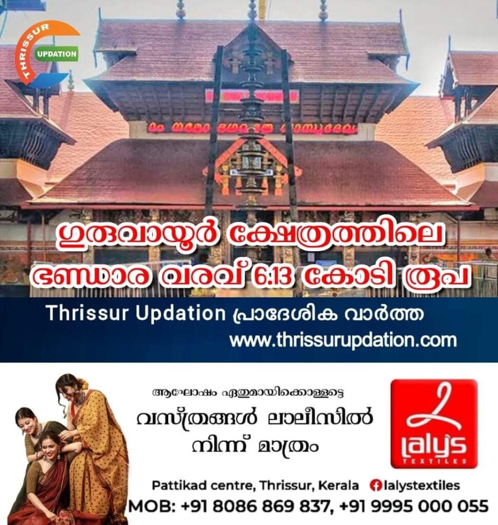ക്ഷേത്രത്തിലെ കഴിഞ്ഞ ഒരു മാസത്തെ ഭണ്ഡാരം വരവായി 6,13,08,091 രൂപയും 2കിലോ 415ഗ്രാം 600 മില്ലിഗ്രാം സ്വർണവും 13.34 കിലോ വെള്ളിയും ലഭിച്ചു. ഇ ഭണ്ഡാര വരവായി 2.07 ലക്ഷം രൂപ ഇതിനു പുറമേ ലഭിച്ചു. കേന്ദ്രസർക്കാർ പിൻവലിച്ച 2000 രൂപയുടെ 45 കറൻസികളും നിരോധിച്ച 1000 രൂപയുടെ 40 കറൻസിയും 500ൻ്റെ 153 കറൻസിയും ഭണ്ഡാരത്തിൽ ഉണ്ടായിരുന്നു.യൂണിയൻ ബാങ്ക് ഓഫ് ഇന്ത്യ ഗുരുവായൂർ ശാഖയ്ക്ക് ആയിരുന്നു ഭണ്ഡാരം എണ്ണുന്നതിന്റെ ചുമതല.