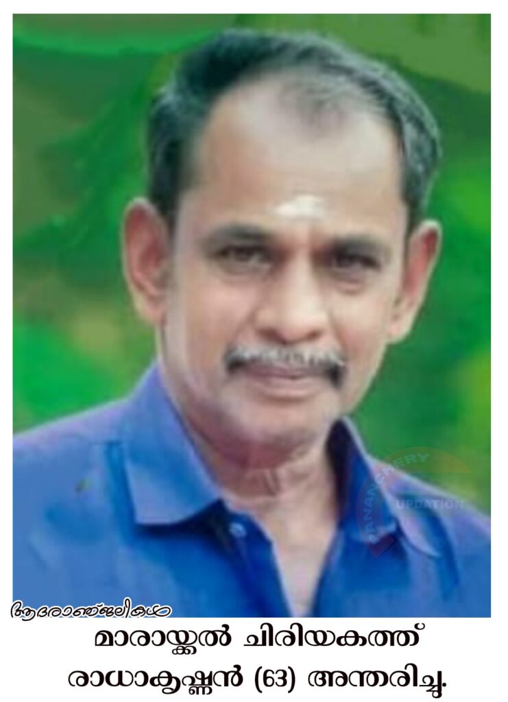 മാരായ്ക്കൽ ചിരിയകത്ത് ശങ്കുണ്ണി നായർ മകൻ രാധാകൃഷ്ണൻ (63) അന്തരിച്ചു.