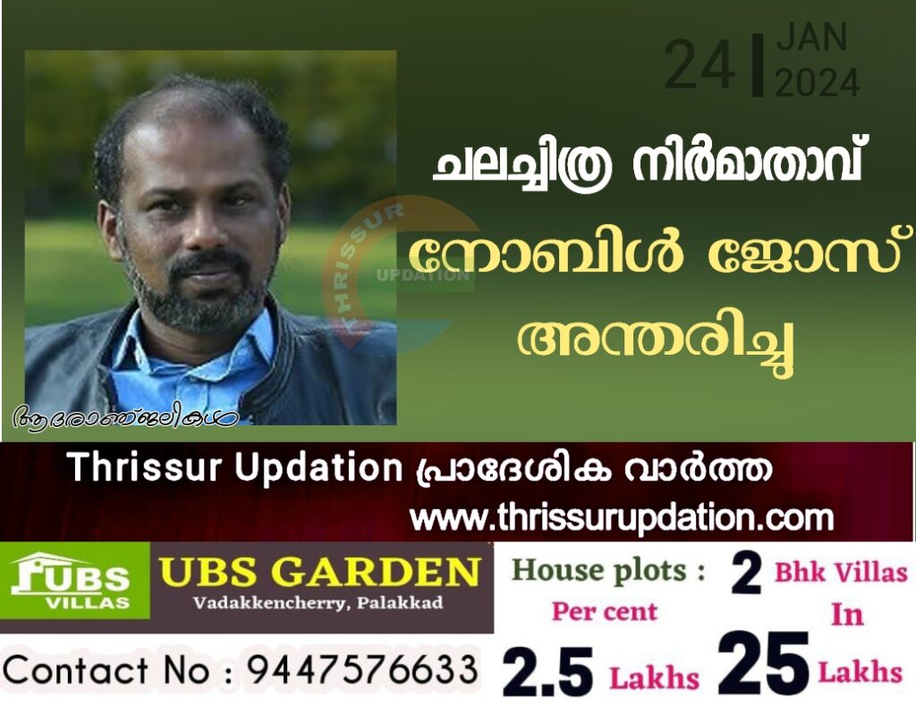 ചലച്ചിത്ര നിർമാതാവ് നോബിൾ ജോസ് (44) അന്തരിച്ചു. ഹൃദയാഘാതത്തെ തുടർന്ന് ഇന്നു പുലർച്ചെ 2.45നു കൊച്ചിയിൽ ആയിരുന്നു അന്ത്യം. അനൂപ് മോനോനും മിയയും മുഖ്യ കഥാപാത്രങ്ങളെ അവതരിപ്പിച്ച ‘എന്റെ മെഴുതിരി അത്താഴങ്ങൾ’, വിഷ്ണു ഉണ്ണികൃഷ്ണൻ നായകനായ ‘കൃഷ്ണൻകുട്ടി പണിതുടങ്ങി’ തുടങ്ങിയ ചിത്രങ്ങളുടെ നിർമാതാവായിരുന്നു. വിഷ്ണു ഉണ്ണികൃഷ്ണൻ, ദിലീഷ് പോത്തൻ എന്നിവർ അഭിനയിച്ച ‘ശലമോൻ’ എന്ന ചിത്രവും നിർമിച്ചിട്ടുണ്ട്. സംസ്കാരം വെള്ളിയാഴ്ച രാവിലെ 11ന് കണ്ടനാട് ഇൻഫന്റ് ജീസസ് പള്ളിയിൽ. മരുതുംകുഴിയിൽ എം.എ. ജോസഫിന്റെ മകനാണ്. ഭാര്യ: നികിത ഗജ്ജാർ നോബിൾ, മകൻ: ഇവാൻ നോബിൾ.