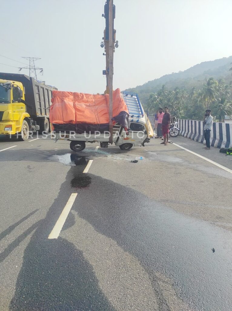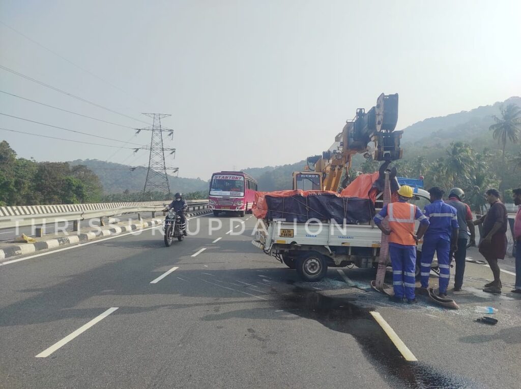 ദേശീയപാത വഴുക്കുംപാറ പാലത്തിനു മുകളിൽ തൃശൂർ ഭാഗത്തേക്ക് പോകുന്ന പിക്കപ്പ് വാനാണ് നിയന്ത്രണം വിട്ട് അയേൺ ക്രാഷ് ബാരിയറിൽ ഇടിച്ച് അപകടം ഉണ്ടായത്. അപകടത്തെത്തുടർന്ന് വാഹനത്തിൽ നിന്നുള്ള ഡീസൽ റോഡിലൂടെ ഒഴുകിയിട്ടുണ്ട്.