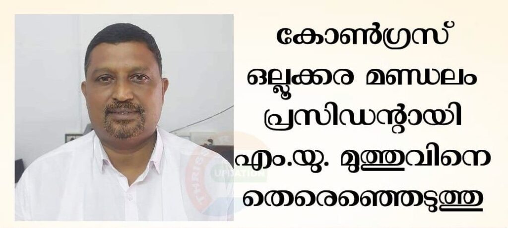 കോൺഗ്രസ് ഒല്ലൂക്കര മണ്ഡലം പ്രസിഡൻ്റായി എം.യു. മുത്തുവിനെ തെരെഞ്ഞെടുത്തു