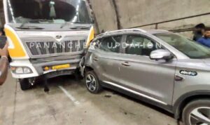 തുരങ്കത്തിനുള്ളിൽ ഇലക്ട്രിക്ക് കാറിൽ ടോറസ് ഇടിച്ച് അപകടം