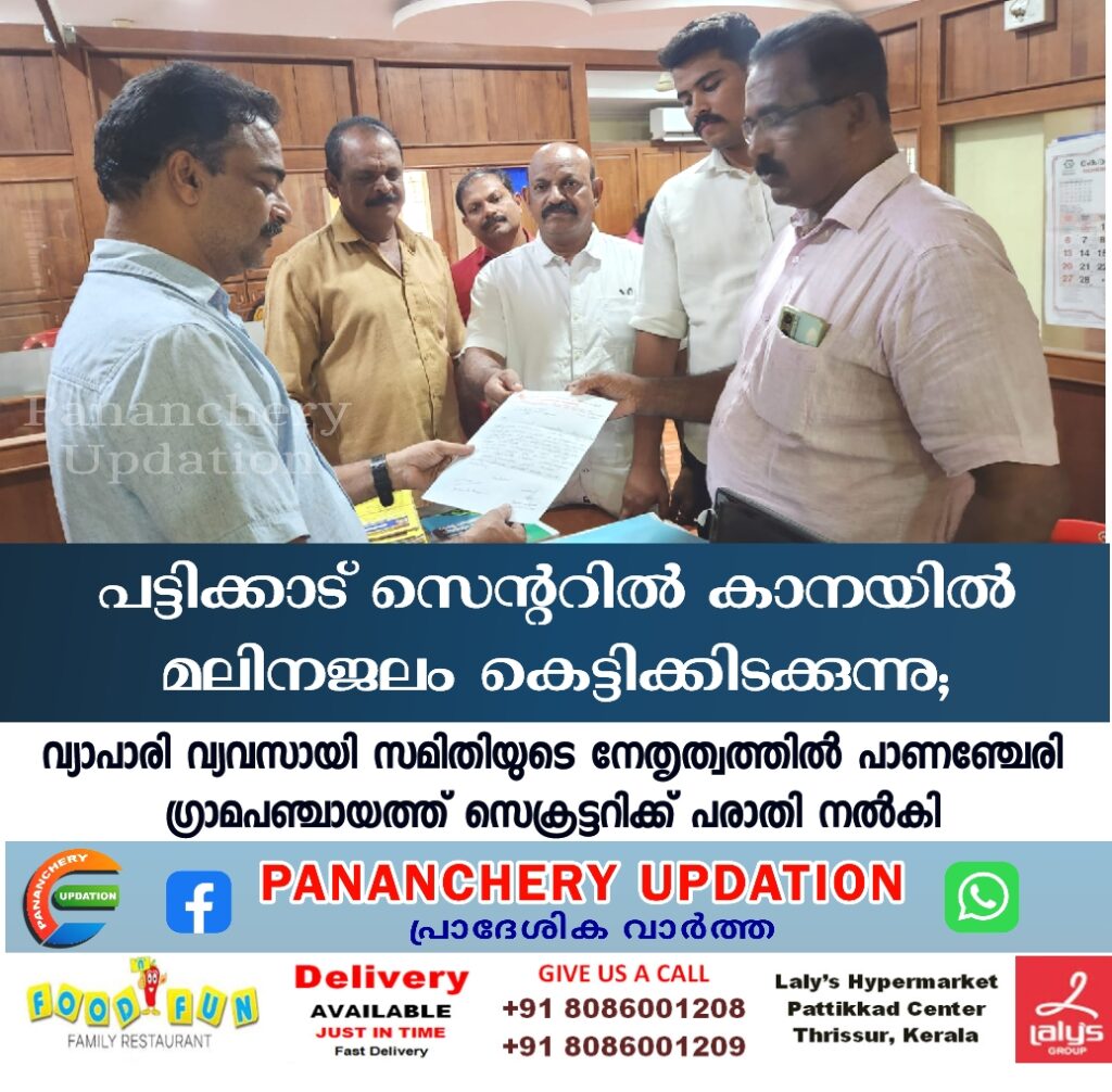 പട്ടിക്കാട് സെന്ററിലെ ലിങ്ക് റോഡിലെ ഇരുകാനകളെയും ബന്ധപ്പെട്ടുക്കിടക്കുന്ന നാഷണൽ ഹൈവേയുടെ കാനയിൽ മലിനജലം കെട്ടിക്കിടക്കുന്നു. ഇതുമൂലം ലിങ്ക് റോഡിലെ കാനകളിലേക്ക് മലിനജലം ഒഴുകുകയും അതിരൂക്ഷമായ ദുർഗന്ധം വമിക്കുന്നു. ഇതേതുടർന്ന് പ്രദേശത്തെ വ്യാപാരികൾക്കും ഓട്ടോറിക്ഷ തൊഴിലാളികൾക്കും ഏറെ ബുദ്ധിമുട്ടുണ്ടാക്കുന്നു. വ്യാപാരി വ്യവസായി സമിതി സംയോജിതമായി ഇടപ്പെട്ട്, സെക്രട്ടറി തോമസ് സാമുവൽ , പ്രസിഡന്റ് ബാബു കൊള്ളന്നൂർ , സണ്ണി ടി.പി , യുത്ത് വിങ് സെക്രട്ടറി ക്രിസ്റ്റോ സൈമൺ , സിറിൽ തോമസ് ഉൾപ്പടെയുള്ളവർ പാണഞ്ചേരി പഞ്ചായത്തിൽ പരാതി നൽകി