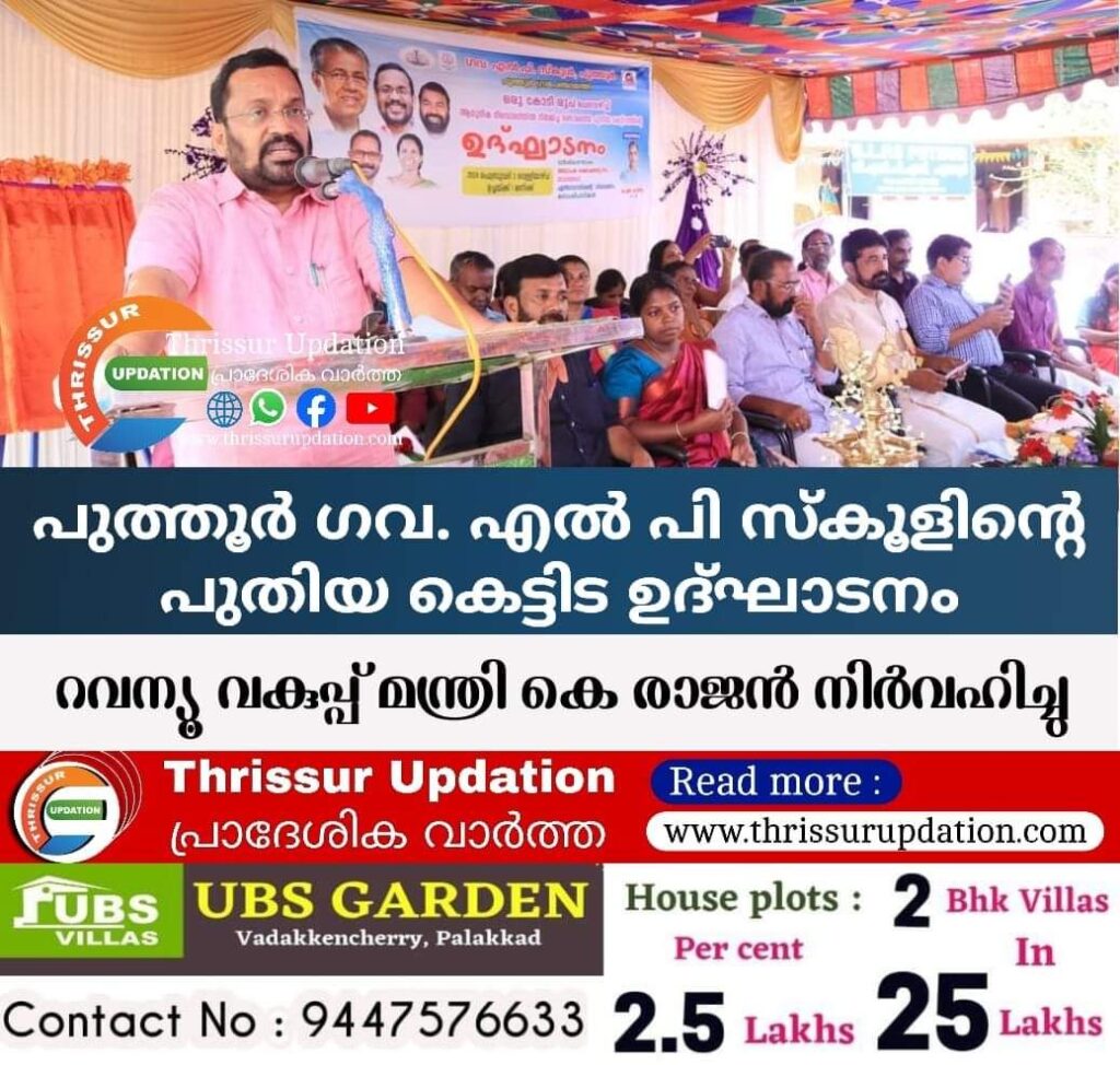 പുത്തൂര് ഗവ. എല് പി സ്കൂളിന്റെ പുതിയ കെട്ടിട ഉദ്ഘാടനം റവന്യൂ വകുപ്പ് മന്ത്രി കെ രാജന് നിര്വഹിച്ചു. വിദ്യാകിരണം മിഷന്റെ ഭാഗമായി ഒരു കോടി രൂപ ചെലവിലാണ് പുതിയ കെട്ടിടം നിര്മിച്ചത്. പൊതുവിദ്യാഭ്യാസ മേഖലയിലെ വികസനങ്ങള്ക്കായി 4875 സ്കൂളുകളിലായി 6922 കോടി രൂപ സര്ക്കാര് ചെലവിട്ടതായി മന്ത്രി പറഞ്ഞു. അക്കാദമിക നിലവാരം ഉയര്ത്തുന്നതോടൊപ്പം പാഠ്യേതര വിഷയങ്ങളിലൂടെയും കുട്ടികളെ അറിവിന്റെ ലോകത്തേക്ക് നയിക്കുന്ന സമ്പ്രദായം ലക്ഷ്യമിട്ടുള്ള പ്രവര്ത്തനങ്ങളാണ് മുന്നേറുന്നത്. നവകേരള സൃഷ്ടിയില് നാടിന്റെ മൂലധന നിക്ഷേപമായാണ് ഓരോ കുട്ടിയെയും സര്ക്കാര് വീക്ഷിക്കുന്നതെന്നും മന്ത്രി കൂട്ടിച്ചേര്ത്തു.
