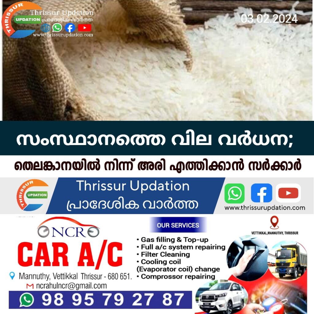 സംസ്ഥാനത്ത് അരിവില വർധിച്ച സാഹചര്യത്തിൽ തെലങ്കാനയിൽ നിന്ന് അരി എത്തിക്കാൻ സർക്കാരിന്റെ നീക്കം. മന്ത്രി ജി ആർ അനിൽ തെലങ്കാന ഭക്ഷ്യമന്ത്രി ഉത്തംകുമാർ റെഡ്ഢിയുമായി ഇതു സംബന്ധിച്ച് ചർച്ച നടത്തി. അരിയും മുളകും എത്തിക്കാൻ ധാരണ ആയെന്ന് ജി ആർ അനിൽ അറിയിച്ചുഹൈദരാബാദിൽ ആയിരുന്നു മന്ത്രിമാരുടെ ചർച്ച. സപ്ലൈകോ ഉദ്യോഗസ്ഥരും തെലങ്കാന സിവിൽ സപ്ലൈസ് ഉദ്യോഗസ്ഥരുമായി തുടർ ചർച്ച ഉണ്ടാകും. വിപണിയിലേതിനെക്കാൾ കുറഞ്ഞ വിലയിൽ സാധനങ്ങൾ നൽകുമെന്ന് തെലങ്കാന അറിയിച്ചെന്നും മന്ത്രി ജി ആർ അനിൽ അറിയിച്ചു.