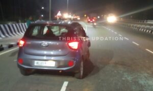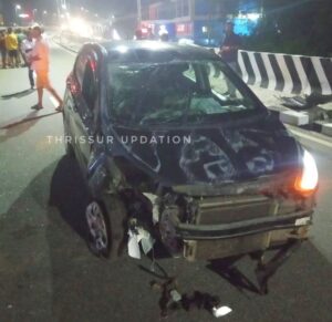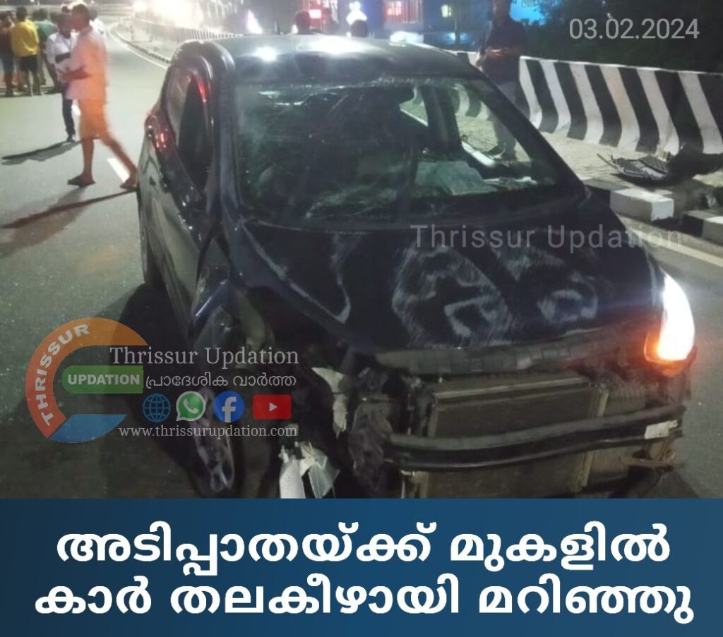 പട്ടിക്കാട് പീച്ചി റോഡ് അടിപ്പാതയ്ക്ക് മുകളിൽ തൃശ്ശൂർ ദിശയിലേക്ക് പോകുന്ന കാർ തലകീഴായി മറിഞ്ഞു
