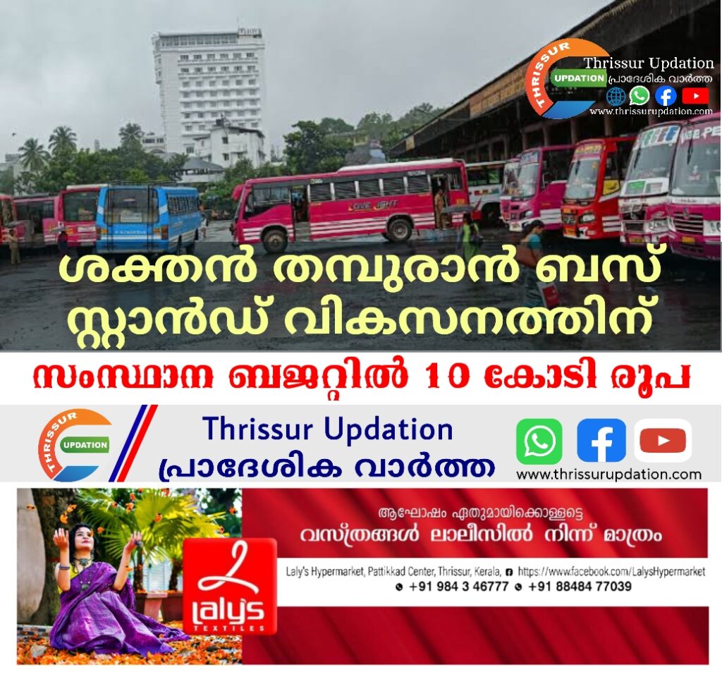 തൃശൂർ ശക്തൻ തമ്പുരാൻ ബസ് സ്റ്റാൻഡ് വികസനത്തിനായി സംസ്ഥാന ബജറ്റിൽ 10 കോടി രൂപ വകയിരുത്തി. ബസ് സ്റ്റാൻഡ് വികസിപ്പിക്കണമെന്ന് ആവശ്യമുയര്ന്നിരുന്നു.