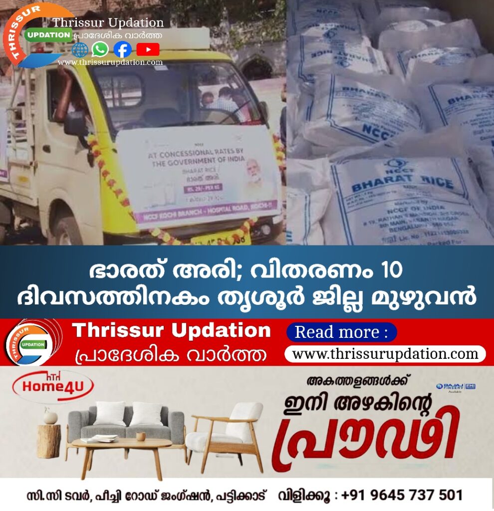 സംസ്ഥാനതല ഫ്ലാഗ് ഓഫിനു പിന്നാലെ പരീക്ഷണാടിസ്ഥാനത്തിലുള്ള അരി വിതരണമാണ് തൃശൂർ ജില്ലയിൽ നടന്നതെന്ന് കേന്ദ്ര ഭക്ഷ്യ വകുപ്പിനു കീഴിലുള്ള നാഷനൽ കോഓപ്പറേറ്റീവ് കൺസ്യൂമേഴ്സ് ഫെഡറേഷൻ (എൻസിസിഎഫ്) അറിയിച്ചു. 10 ദിവസത്തിനുള്ളിൽ ജില്ലയിലുടനീളം അരി വിതരണം വ്യാപിപ്പിക്കാനാണു ലക്ഷ്യമിടുന്നതെന്നും ജില്ലാതല ഉദ്ഘാടനം ഉടൻ നടത്തുമെന്നും എൻസിസിഎഫ് അറിയിച്ചു. കേന്ദ്ര ഭക്ഷ്യ വകുപ്പ് നേരിട്ടു ലോറികളിൽ ഫുഡ് കോർപറേഷൻ ഓഫ് ഇന്ത്യ (എഫ്സിഐ) ഗോഡൗണുകളിൽ എത്തിച്ച അരിയും പരിപ്പും പ്രത്യേകം പായ്ക്ക് ചെയ്തായിരുന്നു ജില്ലയിലെ വിതരണം.കിലോയ്ക്ക് 29 രൂപയാണ് വില. തൃശൂരിൽ മാത്രം 150 ചാക്ക് പൊന്നി അരി വിറ്റതായാണ് സൂചന. അരിയ്ക്കു പുറമെ കടലപ്പരിപ്പും പൊതു വിപണിയേക്കാൾ വിലക്കുറവില് ലഭിക്കും. കടലപരിപ്പിന് കിലോയ്ക്ക് 60 രൂപയാണ് വില.എഫ്സിഐ ഗോഡൗണുകളിൽ നിന്ന് അരിയും പരിപ്പും പ്രത്യേകം പായ്ക്ക് ചെയ്താണ് വിതരണത്തിന് എത്തിക്കുന്നത്. മില്ലേഴ്സ് അസോസിയേഷൻ മുഖേനയാണ് വിതരണം. ഒരാഴ്ചയ്ക്കകം എല്ലാ ജില്ലകളിലും സാധനങ്ങളുമായി വാഹനങ്ങൾ എത്തുമെന്നാണ് വിവരം. കിലോയ്ക്ക് 25 രൂപയ്ക്ക് നേരത്തെ സവാള വിറ്റിരുന്നു. ഓൺലൈൻ മുഖേന ഇതു വാങ്ങാൻ ഉടൻ സൗകര്യം നിലവിൽ വരും. അതേസമയം കേന്ദ്രത്തിന്റ അരി വിൽപന രാഷ്ട്രീയ മുതലെടുപ്പെന്ന് സംസ്ഥാന ഭക്ഷ്യമന്ത്രി ജി.ആർ.അനിൽ പ്രതികരിച്ചു.
