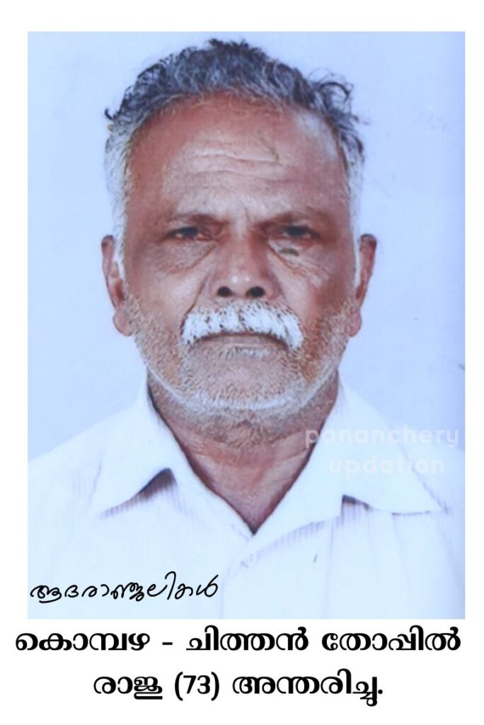 വാണിയമ്പാറ കൊമ്പഴ – ചിത്തൻ തോപ്പിൽ വീട്ടിൽ രാജു (73) അന്തരിച്ചു.സംസ്ക്കാരം കൊമ്പഴ സെൻ്റ്. ജോസഫ് ചർച്ചിൽ വൈകീട്ട് 3 മണിക്ക് . ഭാര്യ: ശാന്ത