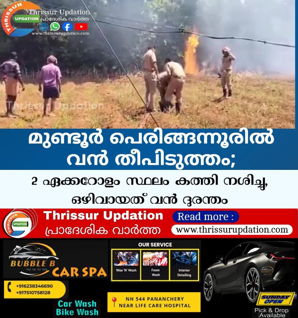 കൈപ്പറമ്പ് ഗ്രാമ പഞ്ചായത്ത് വാർഡ് 14-ൽ പെരിങ്ങന്നൂർ പ്രദേശത്തെ ആത്രേയ ക്രിക്കറ്റ് സ്റ്റേഡിയത്തിന്റെയും, ഗംഗ പന്തൽ വർക്സിന്റെയും പരിസരത്തുള്ള രണ്ട് ഏക്കറോളം സ്ഥലം കത്തി നശിച്ചു. തെങ്ങുകളും കശുമാവുകളും ആണ് കൂടുതൽ കത്തി നശിച്ചിട്ടുള്ളത് . തൃശ്ശൂരിൽ നിന്ന് എത്തിയ അഗ്നിരക്ഷാസേന ഉദ്യോഗസ്ഥരും, വാർഡ് മെമ്പർ കെ ബി ദീപക് ഉൾപ്പെടെ നിരവധി പ്രദേശവാസികളും ചേർന്ന് നടത്തിയ ഏറെ നേരത്തെ പരിശ്രമം കൊണ്ടാണ് തീ നിയന്ത്രണ വിധേയമാക്കിയത്.