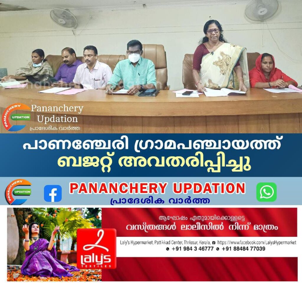 (56,00,000) രൂപയും ബജറ്റില് വകയിരുത്തിട്ടുണ്ട്. പഞ്ചായത്ത് പ്രസിഡൻ്റ് പി.പി രവീന്ദ്രൻ അധ്യക്ഷത വഹിച്ചു. സ്റ്റാൻഡിങ് കമ്മിറ്റി ചെയർമാന്മാരായ ഇ.ടി ജലജൻ, കെ.വി അനിത, സുബൈദ അബൂബക്കർ, പഞ്ചായത്ത് സെക്രട്ടറി പി. ആർ ജോൺ, പഞ്ചായത്ത് അംഗങ്ങൾ എന്നിവർ പങ്കെടുത്തു.