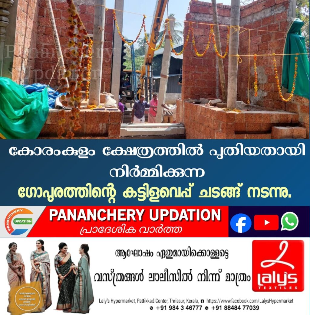 കോരംകുളം ക്ഷേത്രത്തിൽ പുതിയതായി നിർമ്മിക്കുന്ന ഗോപുരത്തിന്റെ