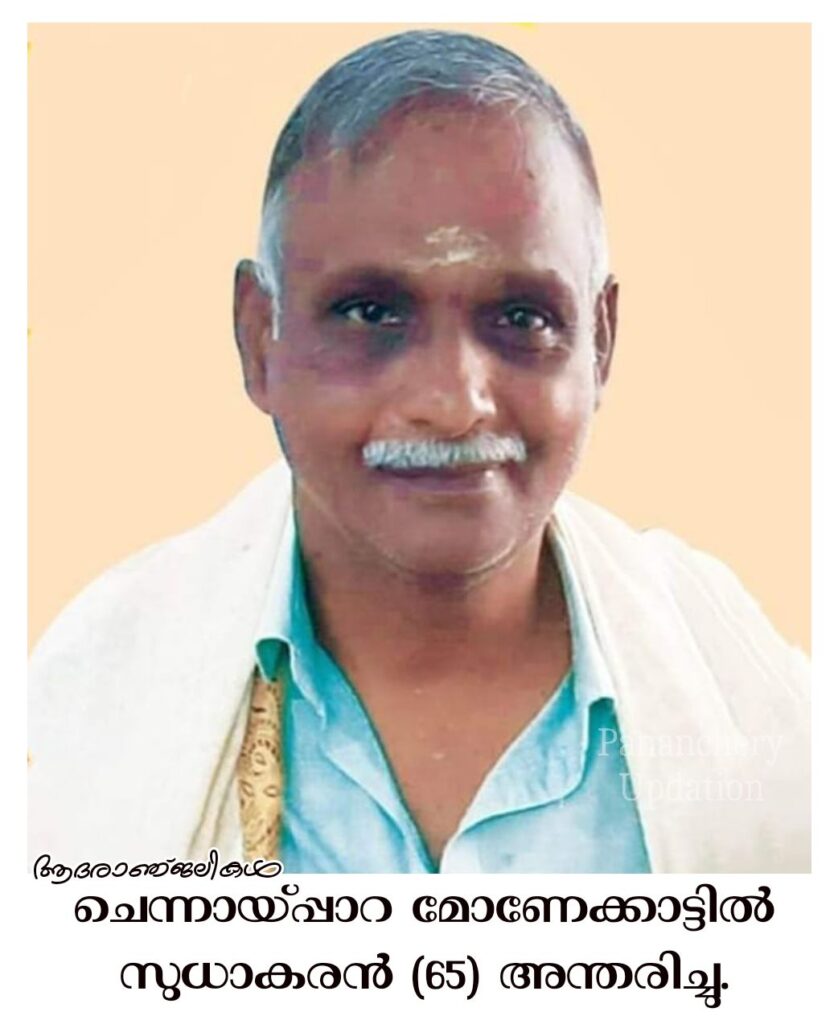 ചെന്നായ്പ്പാറ മോണേക്കാട്ടിൽ ഗോപാലൻ മകൻ സുധാകരൻ (65) അന്തരിച്ചു.