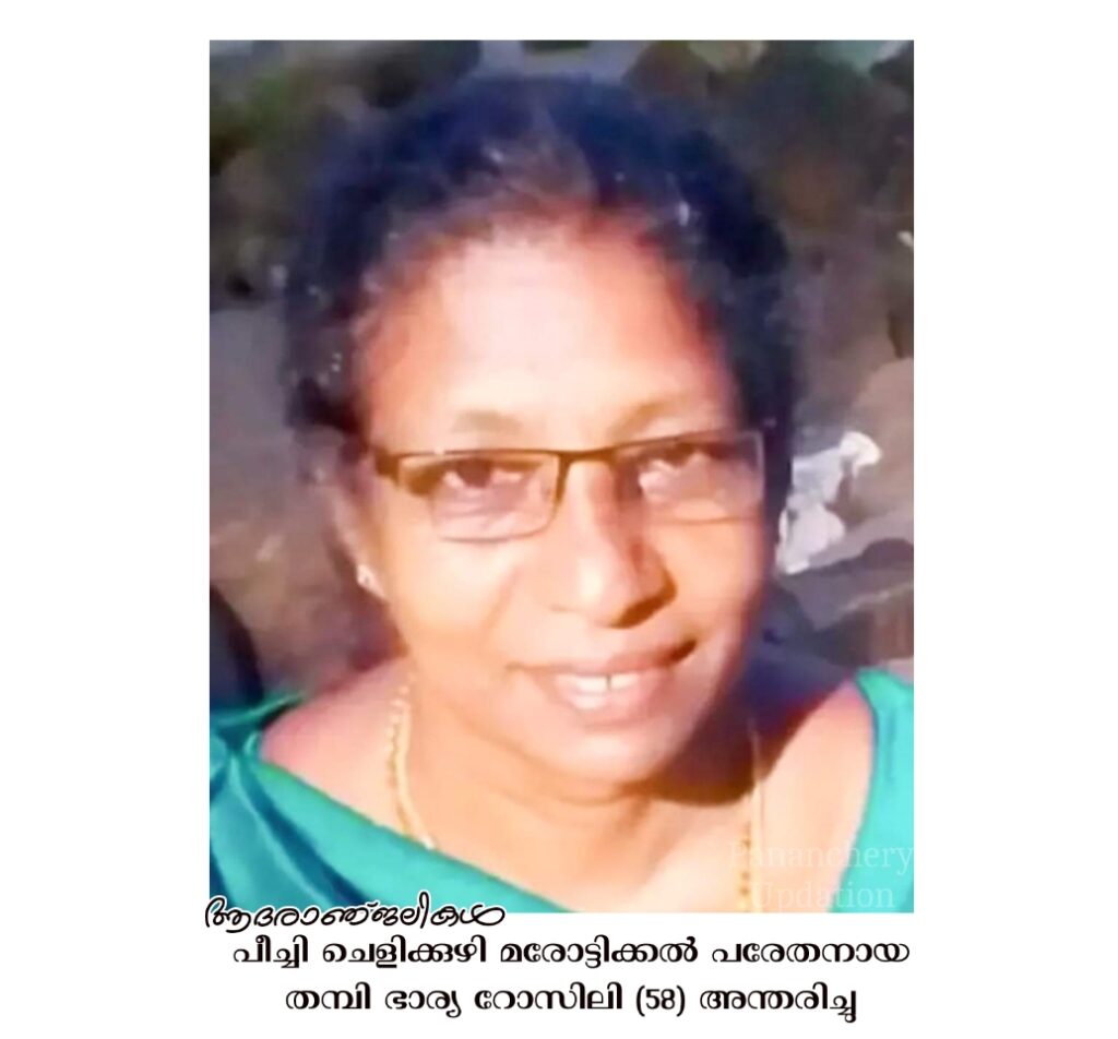 സംസ്കാരം ഇന്ന് (04.03.2024- തിങ്കൾ) ഉച്ചയ്ക്ക് രണ്ട് മണിക്ക് പീച്ചി ലൂർദ് മാതാ പള്ളിയിൽ. മക്കൾ: സ്വാതി, ആനിന, ആഷ്ലി. മരുമക്കൾ: ഷാബു, നിമിഷ.