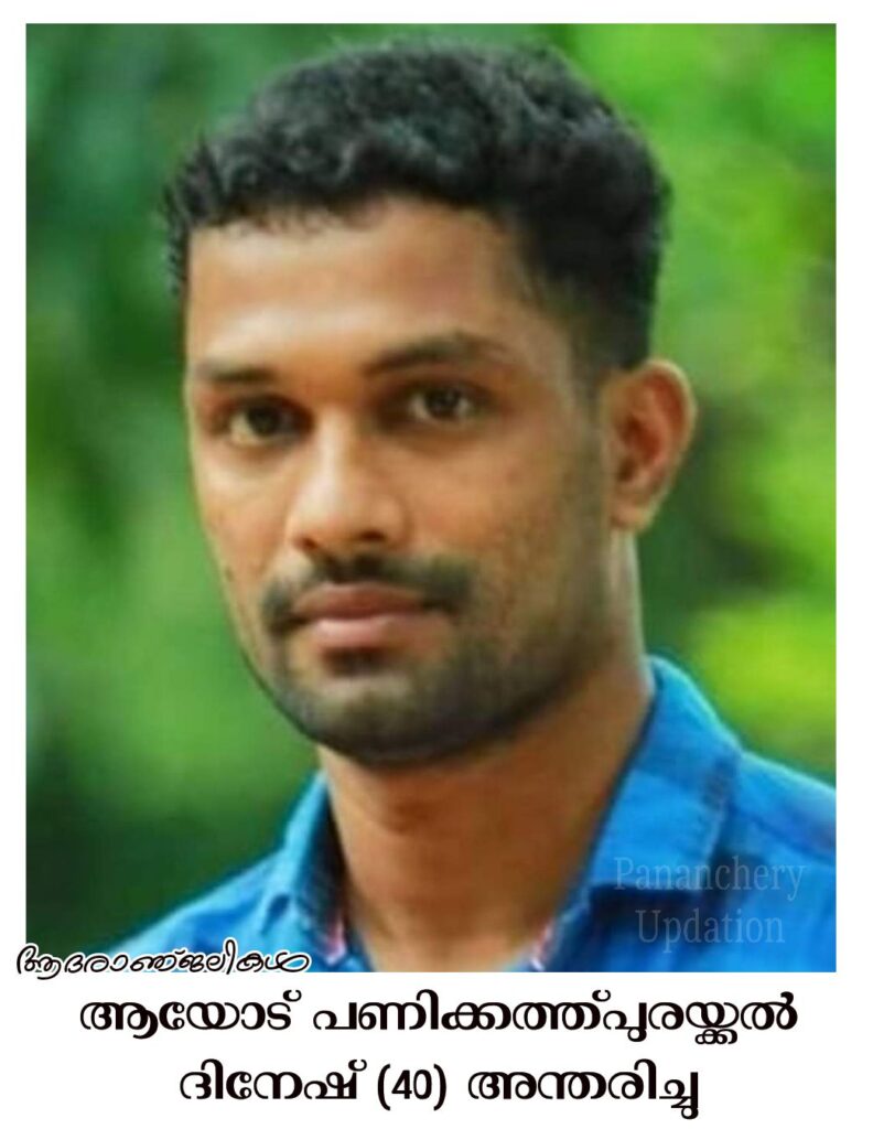 ആയോട് പണിക്കത്ത്പുരയ്ക്കൽ പരേതനായ മാധവൻ മകൻ ദിനേഷ് (40) അന്തരിച്ചു. സംസ്കാരം ഇന്ന് (07.03.2024-വ്യാഴാഴ്ച) വൈകീട്ട് 5 മണിക്ക് വടക്കുംപാടം ആത്മാലയത്തിൽ. അമ്മ: യശോദ. ഭാര്യ: ശീതൾ. മക്കൾ: കാർത്തിക. അനയ.