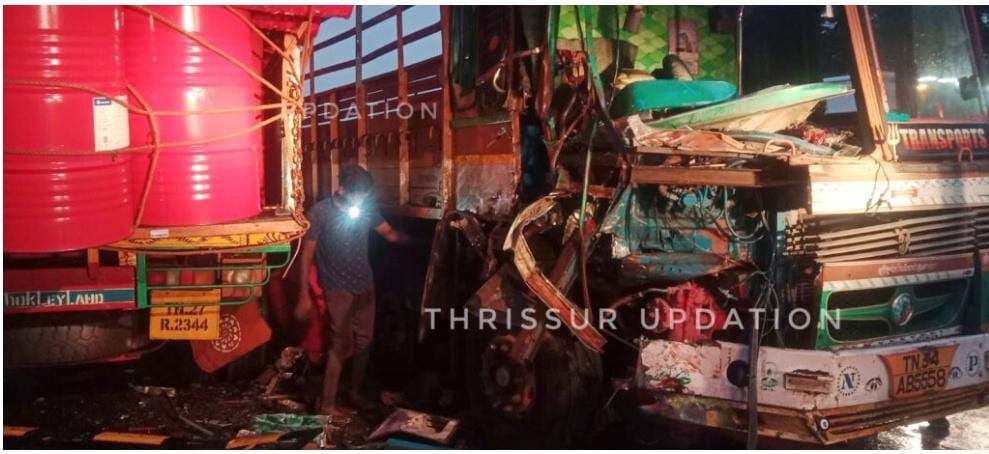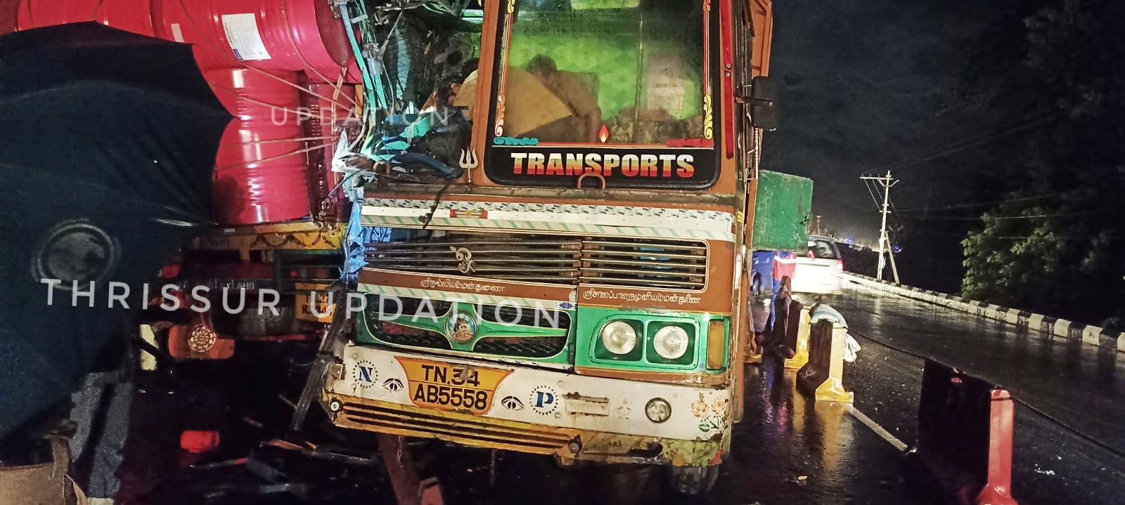 ഗതാഗത നിയന്ത്രണം ഉള്ള ഭാഗത്താണ് അപകടം ഉണ്ടായത് തൃശ്ശൂർ ദിശയിലേക്കും പാലക്കാട് ദിശയിലേക്കും പോകുന്ന ലോറികൾ തമ്മില്ലാണ് കൂട്ടിയിടിത് ഡ്രൈവർ സീറ്റിൽ കുടുങ്ങിയ ഡ്രൈവറെ തൃശ്ശൂരിൽ നിന്നും വടക്കഞ്ചേരിയിൽ നിന്നും വന്ന ഫയർഫോഴ്സ് ഉദ്യോഗസ്ഥരും പോലീസും ചേർന്ന് പുറത്തെടുത്തു വാണിയംപാറയിലെ 108 ആംബുലൻസിൽ ആശുപത്രിയിലേക്ക് കൊണ്ട് പോയി.പാലക്കാട് ഭാഗത്തേക്ക് ചെറിയ ബ്ലോക്ക് ഉണ്ട്. തൃശൂർ ഭാഗത്തേക്ക് പോകുന്ന വാഹനങ്ങൾ വഴുക്കുംപാറ സർവ്വീസ് റോഡിലൂടെ കടത്തിവിട്ട് ഗതാഗതം നിയന്ത്രിക്കുന്നു.