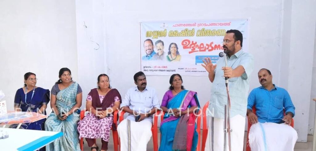 പാണഞ്ചേരി ഗ്രാമപഞ്ചായത്തിന്റെ നേതൃത്വത്തിൽ സ്ത്രീകൾക്ക് സ്വയംതൊഴിൽ സംരംഭത്തിനായുള്ള തയ്യൽ മെഷീനുകളുടെ വിതരണ ഉദ്ഘാടനം റവന്യൂ വകുപ്പ് മന്ത്രി കെ. രാജൻ നിർവ്വഹിച്ചു. 46 വനിതകൾക്കാണ് സ്വയംതൊഴിൽ സംരംഭം ആരംഭിക്കാനായി തയ്യൽ മെഷീനുകളും അനുബന്ധ ഉപകരണങ്ങളും അടക്കം സബ്സിഡിയിലൂടെ ലഭ്യമാക്കുന്നത്. 12.46 ലക്ഷം രൂപയുടെ പദ്ധതിയാണ് നടപ്പിലാക്കുന്നത്. തയ്യൽ മെഷീനുകളും അനുബന്ധ ഉപകരണങ്ങളും അടക്കം 40,000 രൂപയാണ് ഒരാൾക്ക് ചിലവാകുന്നത്. ഇതിൽ 65 ശതമാനം സബ്സിഡിയോട് കൂടി 27,000 രൂപയും പദ്ധതിയുടെ ഭാഗമായി ലഭിക്കും. ആദ്യഘട്ടത്തിൽ 29 പേർക്ക് തയ്യൽമെഷീനുകൾ വിതരണം ചെയ്തു.