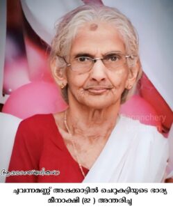 ചുവന്നമണ്ണ് അപ്പക്കാട്ടിൽ ചെറുകുട്ടിയുടെ ഭാര്യ മീനാക്ഷി (82 ) അന്തരിച്ചു. സംസ്ക്കാരം നാളെ(15.03.2024 വെള്ളിയാഴ്ച ) രാവിലെ 11 മണിക്ക് തിരുവില്വാമലയിൽ .