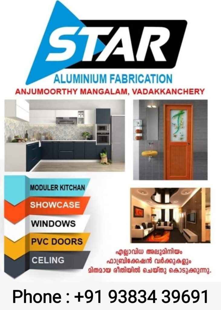 Moduler Kitchan, Showcase, Windows, PVC Doors, Celing തുടങ്ങിയ എല്ലാവിധ അലൂമിനിയം ഫാബ്രിക്കേഷൻ വർക്കുകളും മിതമായ രീതിയിൽ ചെയ്തു കൊടുക്കുന്നു.