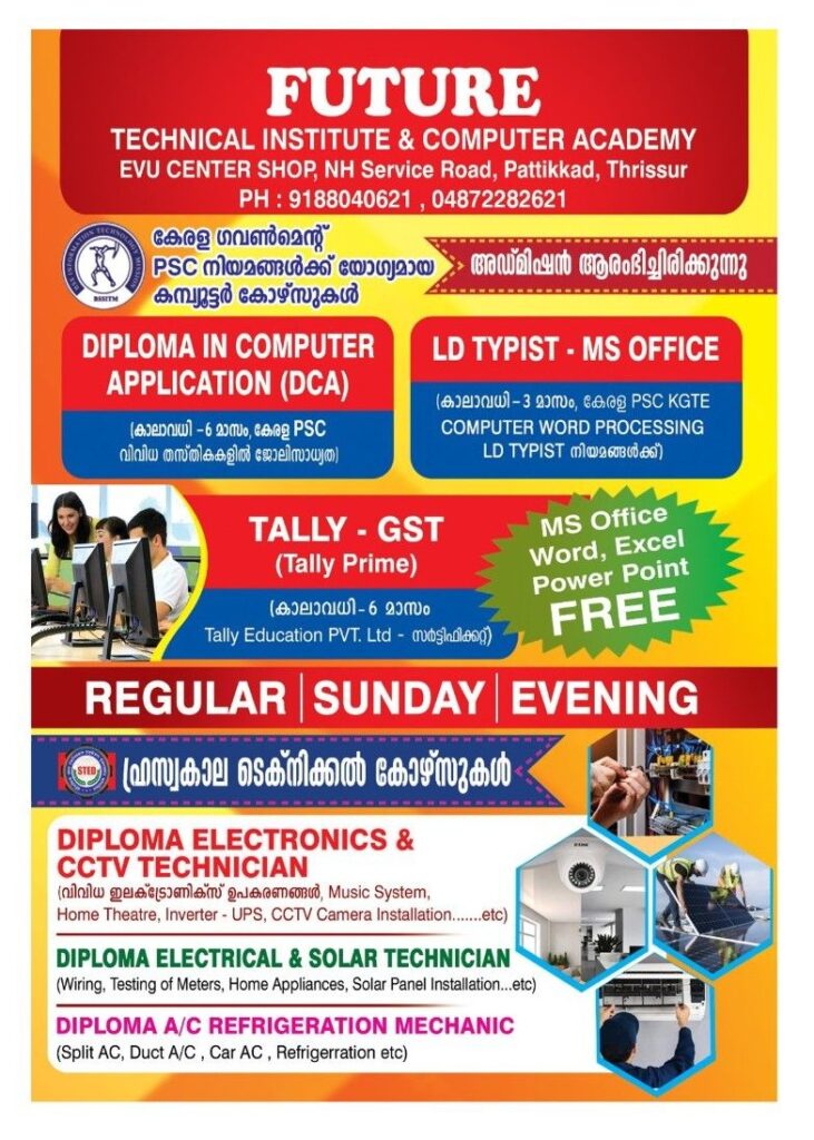 സർക്കാർ ജോലി ആഗ്രഹിക്കുന്നവർക്കായി കേരള സർക്കാർ PSC നിയമങ്ങൾക്ക് യോഗ്യമായ കമ്പ്യൂട്ടർ കോഴ്സുകൾ TALLY 3 MONTHS