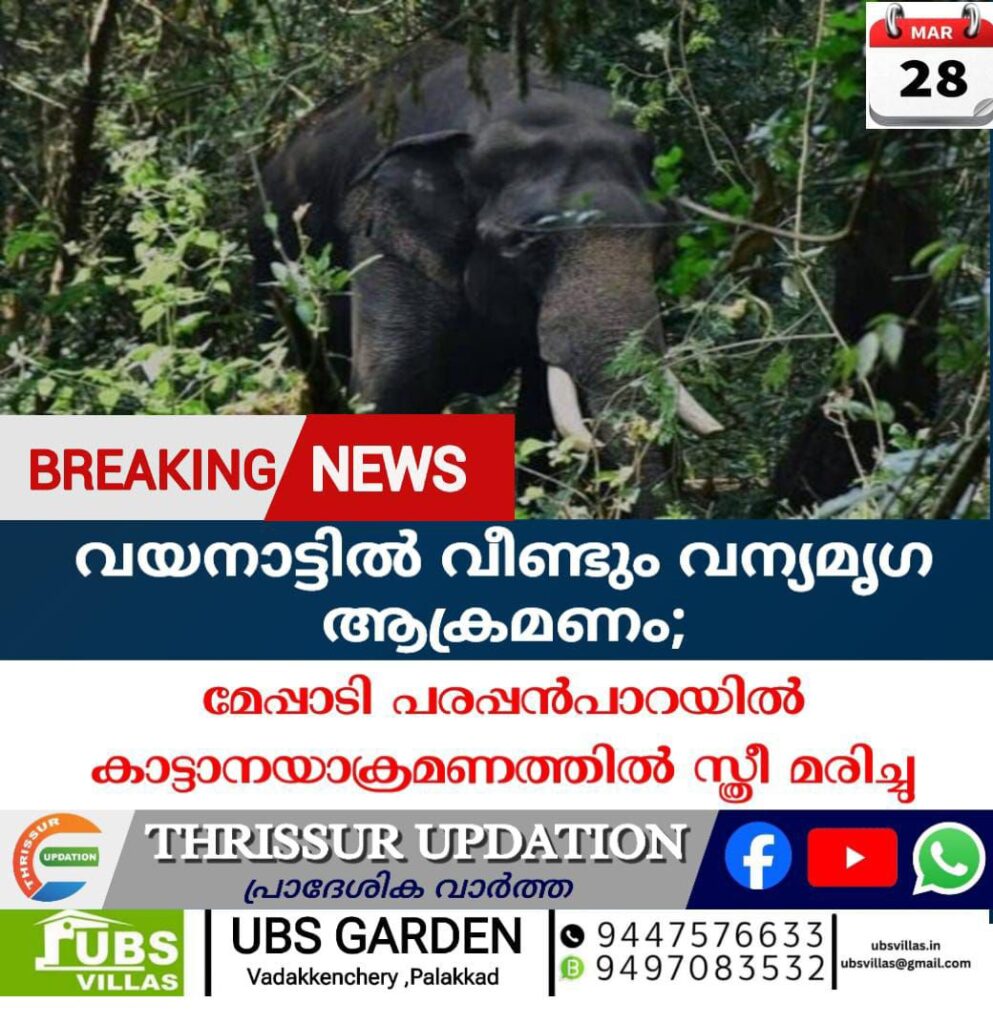 മേപ്പാടിയില് കാട്ടാന ആക്രമണത്തില് ആദിവാസി സ്ത്രീ കൊല്ലപ്പെട്ടു. മേപ്പാടിയില് നിന്നും പത്ത് കിലോമീറ്റര് മാറി വനത്തിനുള്ളിലാണ് കാട്ടാന ആക്രമണം ഉണ്ടായിരിക്കുന്നത്. മേപ്പാടി പരപ്പന്പാറ കോളനിയിലെ സുരേഷിന്റെ ഭാര്യ മിനിയാണ് മരിച്ചത്. ആക്രമണത്തില് സുരേഷിന് പരിക്കേറ്റിട്ടുണ്ട്. ഇരുവരും കാടിനുള്ളില് തേന് ശേഖരിക്കാന് പോയപ്പോഴായിരുന്നു ആനയുടെ മുന്നില് അകപ്പെട്ടത്. മേപ്പാടിയില് നിന്നും നിലമ്പൂരില് നിന്നും വനംവകുപ്പ് ഉദ്യോഗസ്ഥര് പ്രദേശത്തേക്ക് തിരിച്ചിട്ടുണ്ടെന്നാണ് വിവരം. വയനാട്ടിൽ തുടർച്ചയായി വന്യജീവി ആക്രമണത്തിൽ പ്രതിഷേധം ശക്തമാവുകയാണ്. അതിനിടയിലാണ് വീണ്ടും ആക്രമണത്തിൽ ഒരു സ്ത്രീകൂടി കൊല്ലപ്പെട്ടിരിക്കുന്നത്.