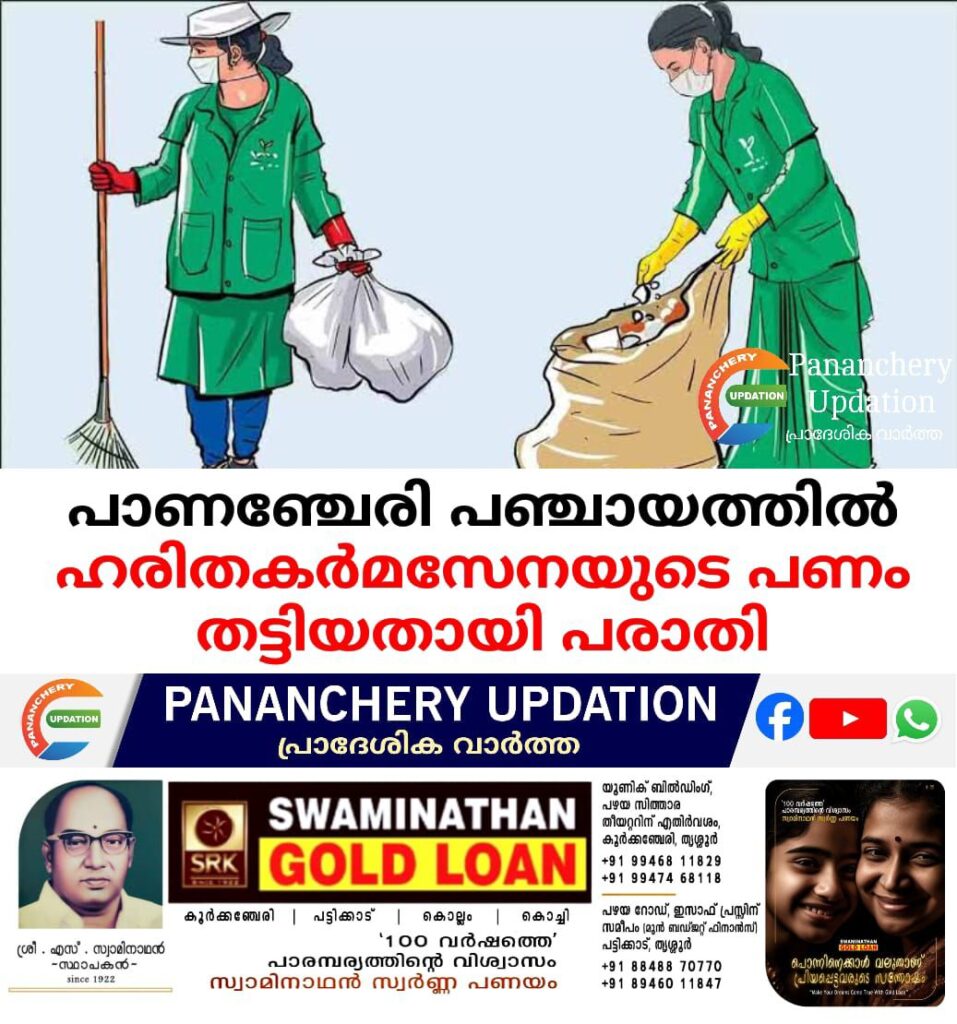 പാണഞ്ചേരി പഞ്ചായത്തിലെ ഹരിതകർമസേനയുടെ പേരിലുള്ള കൺസോർഷ്യം ബാങ്ക് അക്കൗണ്ടിൽനിന്ന് സെക്രട്ടറിയുടെ വ്യാജ ഒപ്പിട്ട് ഒന്നരലക്ഷം തട്ടിയതായി പരാതി. സംഭവവുമായി ബന്ധപ്പെട്ട് പയ്യനം വാർഡ് അംഗവും ഹരിതകർമസേന കൺസോർഷ്യം പഞ്ചായത്തുതല പ്രസിഡന്റുമായ സിന്റലിയുടെ പേരിൽ പീച്ചി പോലീസ് കേസെടുത്തു.പദ്ധതിയുടെ പഞ്ചായത്ത് നിർവഹണ ചുമതലയുള്ള വില്ലേജ് എക്സ്റ്റൻഷൻ ഓഫീസറുടെ മൊഴിയുടെ അടിസ്ഥാനത്തിലാണ് കേസ്.