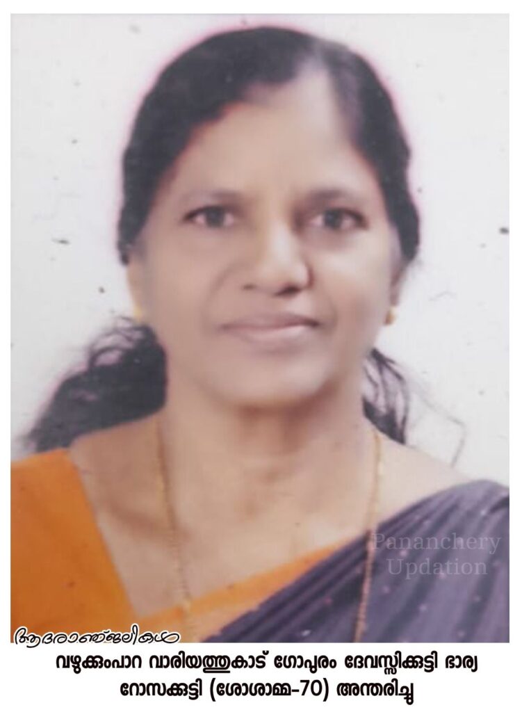 സംസ്ക്കാരം ഇന്ന് (06.04.2024- ശനി) വൈകീട്ട് 4.30 ന് ചുവന്നമണ്ണ് നിർമ്മലഗിരി സെൻ്റ് ജോസഫ് പള്ളിയിൽ. മക്കൾ : എബിൻ ( എൻ.സി.പി പാണഞ്ചേരി മണ്ഡലം പ്രസിഡന്റ്), സോബിൻ മരുമക്കൾ: ലിനി, എൽബി