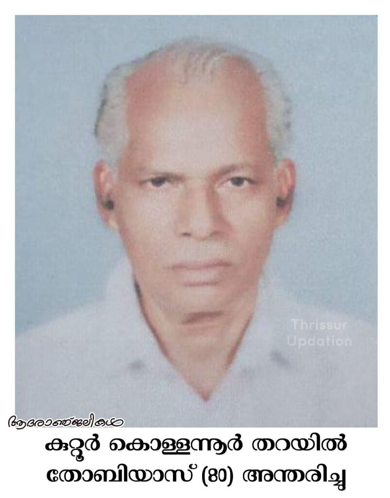 കുറ്റൂർ കൊള്ളന്നൂർ തറയിൽ ലോന മകൻ തോബിയാസ് (80) അന്തരിച്ചു. സംസ്കാരം ഇന്ന് ( 07-04-2024- ഞായറാഴ്ച) ഉച്ചതിരിഞ്ഞ് 3.30ന് കുറ്റൂർ മേരി മാതാ ദൈവാലയത്തിൽ ഭാര്യ:-പ്രേമ മക്കൾ : ശാന്തി, ശാലി, ആശ മരുമക്കൾ: ഷാജൻ, ഡെന്നി,മാർവിൻ