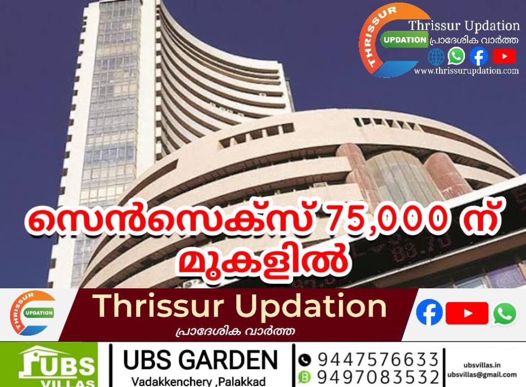 ഓഹരി വിപണിയിൽ കുതിപ്പ് തുടരുന്നു. സെൻസെക്സ് ചരിത്രത്തിൽ ആദ്യമായി 75,000 പോയിൻ്റിന് മുകളിൽ അവസാനിച്ചു. ഇന്നലെ സെൻസെക്സ് 354.45 പോയിന്റ് കയറി 75,038.15ൽ എത്തി. നിഫ്റ്റി 111.05 പോയിന്റ് ഉയർന്ന് 22,753.80ൽ അവസാനിച്ചു. ഒരവസരത്തിൽ സെൻസെക്സ് 421 പോയിന്റ് വരെ ഉയർന്നിരുന്നു. എഫ്എംസിജി, മെറ്റൽ, ഊർജം ഓഹരി വിലകളിലെ കയറ്റമാണ് സൂചികകളെ പിടിച്ചുയർത്തിയത്. ചൊവാഴ്ച്ച സെൻസെക്സ് 75,000 കടന്നുവെങ്കിലും ഇതിലും താഴെയാണ് അവസാനിച്ചത്. സൂചികാധിഷ്ഠിത ഓഹരികളിൽ മെറ്റൽ 1.66 ശതമാനം, ഊർജം 1.71 ശതമാനം ഓയിൽ ആൻഡ് ഗ്യാസ് 1.74 ശതമാനം മെച്ചപ്പെട്ടു. വിപണിയിലെ കുതി പ്പ് നിക്ഷേപകരുടെ ആസ്തിയിൽ 2.27 ലക്ഷം കോടി രൂപയുടെ വർധനയാണ് ഉണ്ടാക്കിയത്. ബിഎസ്ഇയിൽ ലിസ്റ്റ് ചെയ്ത ഓഹരികളുടെ വിപണി മൂല്യം 4,02,19,353.07 കോടി രൂപയിലെത്തി. ഏഷ്യൻ, യൂറോപ്യൻ വിപണികളും ഉണർവ് പ്രകടമായി. യുഎസ് പ്രഖ്യാപിക്കുന്ന നാണ്യപ്പെരുപ്പ നിരക്കുകളിലാണ് ഇനി വിപണിയുടെ ശ്രദ്ധ.