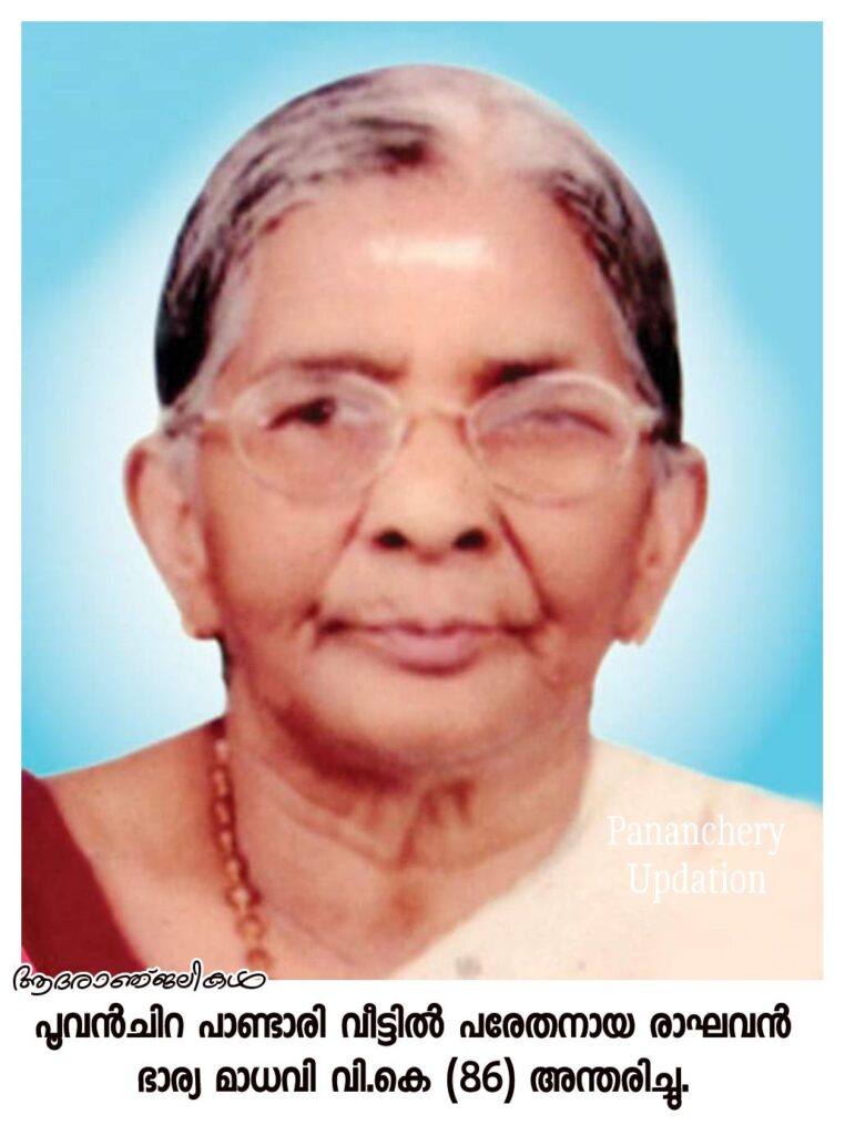സംസ്കാരം ഇന്ന് (16.04.2024 ചൊവ്വാഴ്ച) വൈകീട്ട് മൂന്ന് മണിക്ക് വടൂക്കര എസ്എൻഡിപി ശ്മശാനത്തിൽ. മക്കൾ: ശ്രീനിവാസൻ, സുരേഷ്, രതീഷ്, സത്യൻ, വത്സല, സതി, ഇന്ദിര, സാവിത്രി. മരുമക്കൾ: സുനിത, ശകുന്തള, രാഗി, വിനിത, പരേതനായ സ്വാമിനാഥൻ, അശോകൻ, രവി, ബാബു.