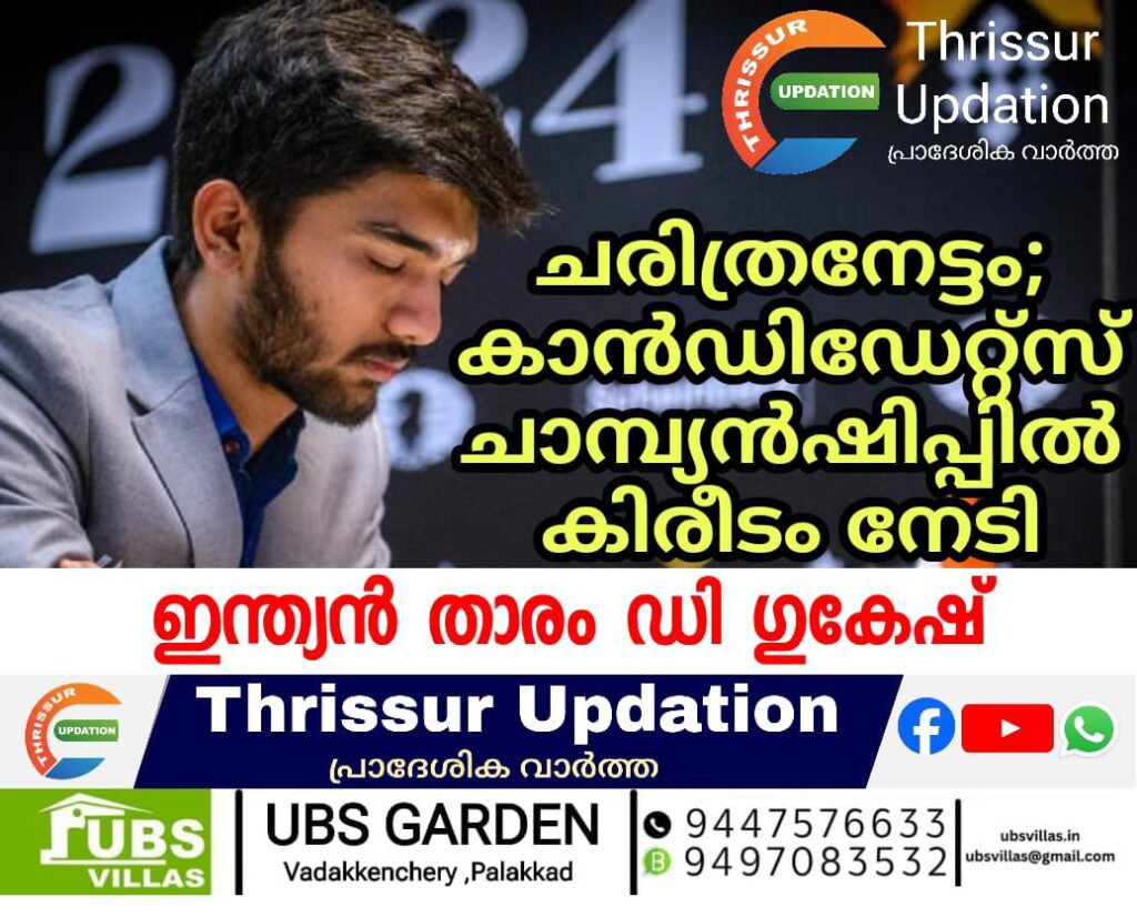 കാൻഡിഡേറ്റ്സ് ചാംപ്യൻഷിപ്പിൽ ഇന്ത്യൻ താരം ഡി ഗുകേഷിന് കിരീടം. കാൻഡിഡേറ്റ്സ് ചാമ്പ്യൻഷിപ്പ് കിരീടം സ്വന്തമാക്കുന്ന ഏറ്റവും പ്രായം കുറഞ്ഞ ചെസ് താരം എന്ന നേട്ടവും ഇനി ഗുകേഷിന് സ്വന്തം. അവസാന റൗണ്ട് മത്സരത്തില് ലോക മൂന്നാം നമ്പര് താരം അമേരിക്കയുടെ ഹിക്കാരു നക്കാമുറയെ സമനിലയില് തളച്ചാണ് നേട്ടം.ലോക ചെസ് ചാമ്പ്യനുമായി മത്സരിക്കുന്നതിനുള്ള എതിരാളിയെ കണ്ടെത്തുന്നതിനുള്ള മത്സരമാണ് കാൻഡിഡേറ്റ്സ് ചാമ്പ്യൻഷിപ്പ്. നിലവിലെ ലോകചാമ്പ്യൻ ഒഴികെയുള്ള ചെസ് താരങ്ങളും കാൻഡിഡേറ്റ്സ് ചാമ്പ്യൻഷിപ്പിൽ മത്സരത്തിനിറങ്ങും. ടൂർണമെന്റിലെ വിജയിയായിരിക്കും ലോക ചാമ്പ്യനുമായി മത്സരിക്കുക. 2014ല് വിശ്വനാഥന് ആനന്ദിന് ശേഷം കാന്ഡിഡേറ്റസ് ടൂര്ണമെന്റ് ജയിക്കുന്ന ആദ്യ ഇന്ത്യന് താരം കൂടിയാണ് ഗുകേഷ്