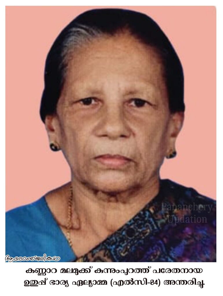 സംസ്കാരം ഇന്ന് (24.04.2024-ബുധനാഴ്ച) രാവിലെ 10.30ന് കണ്ണാറ സെന്റ് മേരീസ് യാക്കോബായ സുറിയാനി സുനോറോ പള്ളിയിൽ. മക്കൾ: ബേബി, കുഞ്ഞുമോൾ, റീന, ബെന്നി. മരുമക്കൾ: തങ്കമ്മ, മാണി (കുഞ്ഞ്), സണ്ണി, ജിജി.