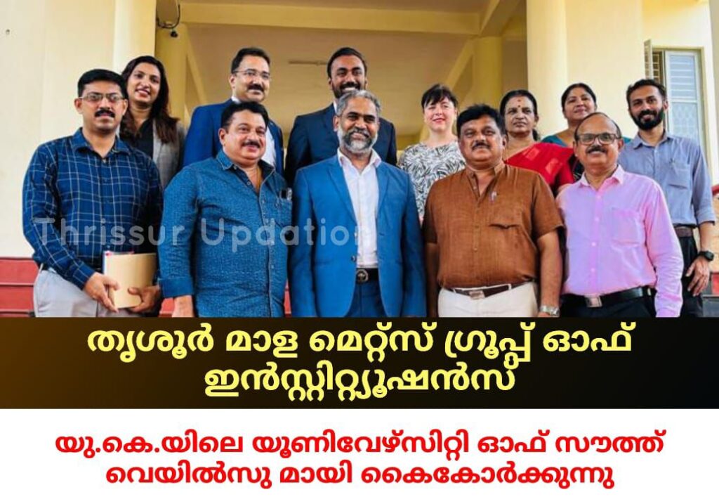 തൃശൂർ മാള മെറ്റ്സ് ഗ്രൂപ്പ് ഓഫ് ഇൻസ്റ്റ്യൂഷൻസിന് ഒരു തിലകക്കുറി കൂടി. യുകെയിലെ യൂണിവേഴ്സിറ്റി ഓഫ് സൗത്ത് വെയിൽസ് (യു എസ് ഡബ്ലിയു) മെറ്റ്സ് ഗ്രൂപ്പ് ഓഫ് ഇൻസ്റ്റിറ്റ്യൂഷൻസിലെ വിദ്യാഭ്യാസ സ്ഥാപനങ്ങൾ ആയ മെറ്റ്സ് സ്കൂൾ ഓഫ് എൻജിനീയറിങ്ങ്, മെറ്റ്സ് പോളിടെക്നിക് കോളേജ്, മെറ്റ്സ് കോളേജ് ഓഫ് അഡ്വാൻസ്ഡ് സ്റ്റഡീസ് എന്നിവ സന്ദർശിച്ച്, അക്കാദമിക് അടിസ്ഥാന സൌകര്യങ്ങൾ വിലയിരുത്തി. യു.കെ. യിൽ വിദ്യാർത്ഥികളുടെ തുടർ പഠനത്തിനും പ്ലേസ്മെൻറ് അസിസ്റ്റൻസിനും ധാരണയായി. ഇതനുസരിച്ച് മെറ്റ്സ് കോളേജുകളിൽ പഠിക്കുന്ന വിദ്യാർത്ഥികൾക്ക് അന്താരാഷ്ട്ര പ്രശസ്തിയാർജിച്ച യൂണിവേഴ്സിറ്റി ഓഫ് സൗത്ത് വെയിൽസിലെ തുടർ പഠനത്തിനുശേഷം ബിരുദവും ബിരുദാനന്തര ബിരുദവും കുറഞ്ഞ കാലയളവിൽ കുറഞ്ഞ ഫീസിൽ ലഭിക്കുന്നതാണ്. യൂണിവേഴ്സിറ്റി ഓഫ് സൗത്ത് വെയിൽസിനെ പ്രതിനിധീകരിച്ചുകൊണ്ട് ഇൻറർനാഷണൽ ഡെവലപ്മെൻറ് മാനേജർ ജോവാന സ്കാൽപ്ലിഹോൺ, ഓപ്പറേഷൻസ് ഡയറക്ടർ (ഇന്ത്യ) വിഷ്ണു ധനപാൽ, യു. കെ.യിലെ പ്രശസ്ത എജുക്കേഷൻ കൺസൾട്ടൻസി സ്ഥാപനമായ ഏലൂർ കൺസൾട്ടൻസി യു.കെ. ലിമിറ്റഡ് മാനേജിങ് ഡയറക്ടർ മാത്യു ജെയിംസ്, അസിസ്റ്റൻറ് ജനറൽ മാനേജർ സൂസൻ ജോൺ തുടങ്ങിയവർ