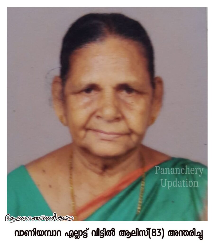 വാണിയമ്പാറ എല്ലാട്ട് ഔസേപ്പ് ഭാര്യ ആലിസ് (83) അന്തരിച്ചു.