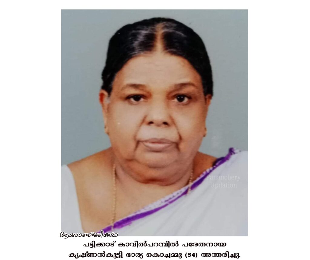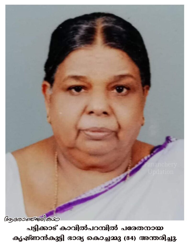 സംസ്കാരം ഇന്ന് (01.05.2024- ബുധൻ) വൈകീട്ട് 3 മണിക്ക് പാമ്പാടി ഐവർമഠത്തിൽ. മകൻ: പരേതനായ സുന്ദരൻ (പഞ്ചായത്ത് ഡ്രൈവർ). മരുമകൾ: ലളിത.
