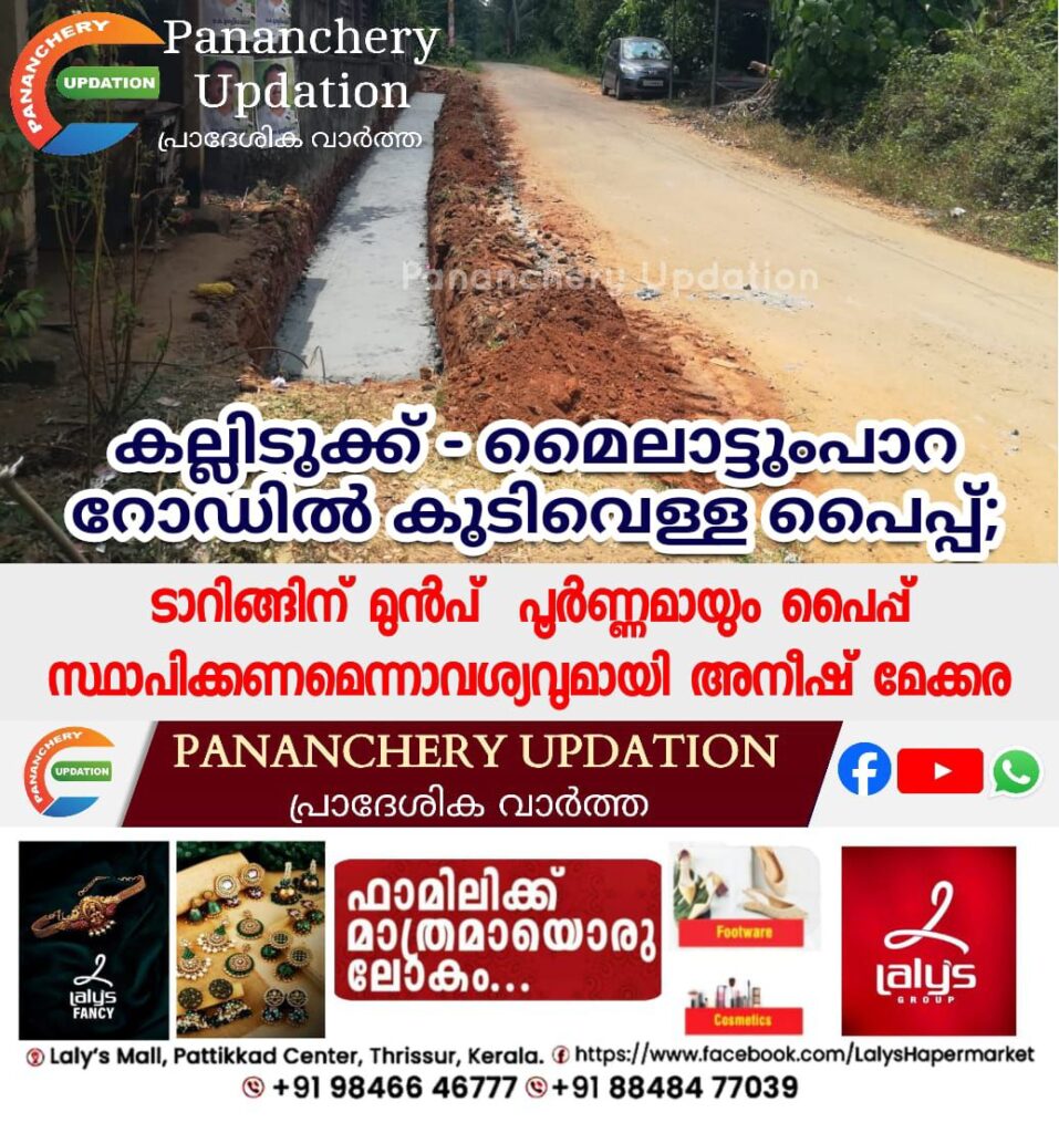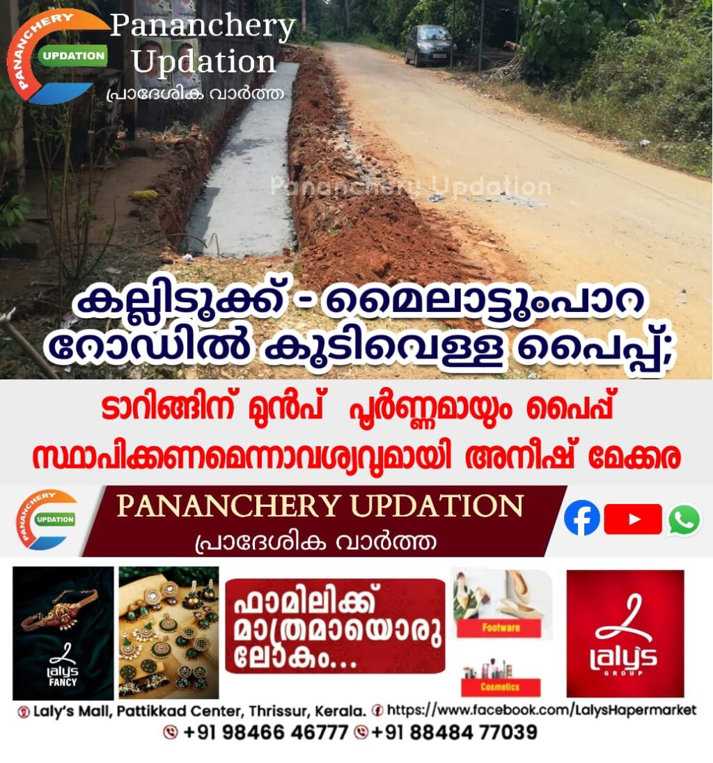 പ്രധാനമന്ത്രി ഗ്രാമ സഡക് യോജന പദ്ധതി പ്രകാരം നിർമ്മാണ പ്രവർത്തികൾ ആരംഭിച്ച 6 കിലോമീറ്റർ ദൈർഘ്യം വരുന്ന കല്ലിടുക്ക് – മൈലാട്ടുംപാറ റോഡിൽ കല്ലിടുക്ക് മുതൽ തെക്കുംപാടം വരെ 1 കി.മി മാത്രമാണ് ജൽ ജീവൻ കുടിവെള്ള പൈപ്പ് സ്ഥാപിച്ചിട്ടുള്ളത്. കന്നുകാലിച്ചാൽ – മൈലാട്ടുംപാറ ഉൾപ്പെടുന്ന ബാക്കി 5 കി.മി ഭാഗത്ത് കുടിവെള്ള പൈപ്പ് സ്ഥാപിച്ചിട്ടില്ല. ഇവിടെ ടാറിങ്ങിന് മുൻപ് പൈപ്പ് സ്ഥാപിക്കുന്നില്ലെങ്കിൽ വീണ്ടും റോഡ് പൊളിക്കേണ്ടി വരും.കരാറുകാരനു വേണ്ടി ജനങ്ങളെ തെറ്റിദ്ധരിപ്പിച്ച് കരിവാരി തേക്കാനുള്ള നീക്കം അപലപനീയമാണന്ന് വാർഡ് മെമ്പർ അനീഷ് മേക്കര പറഞ്ഞു