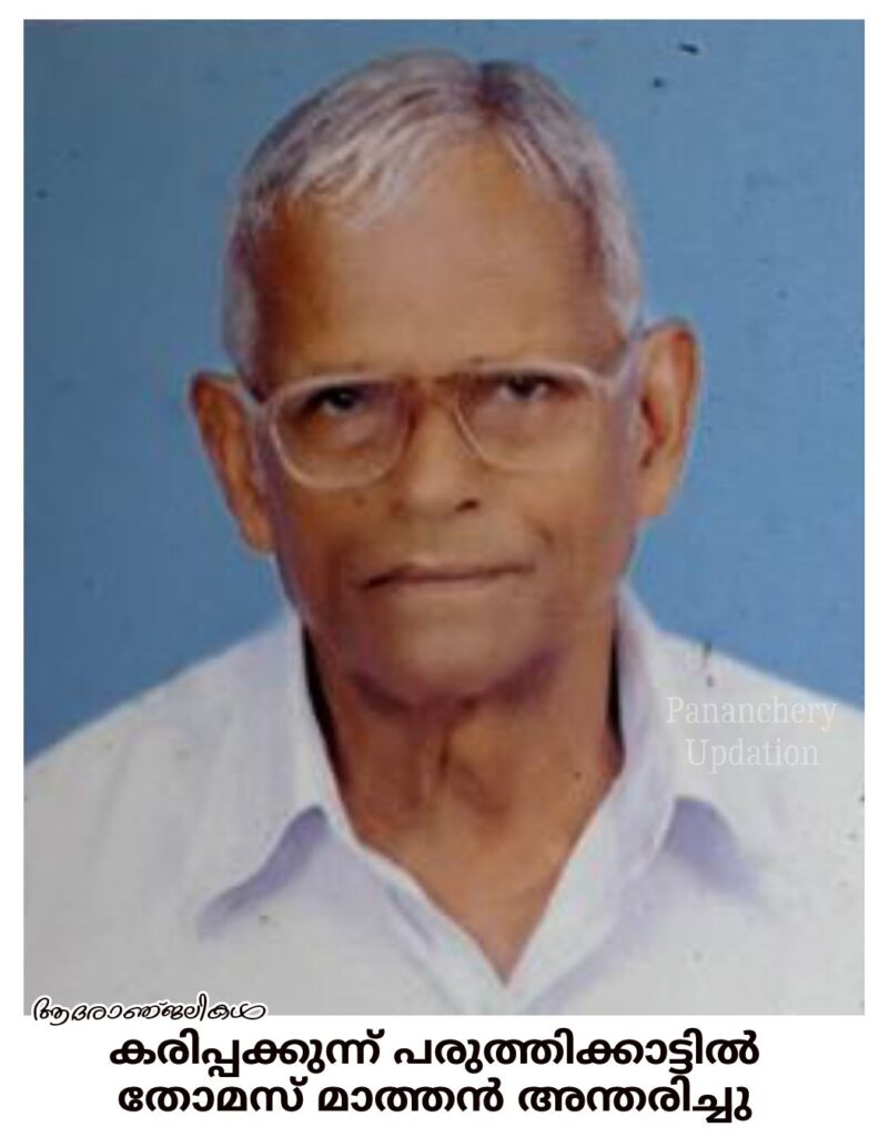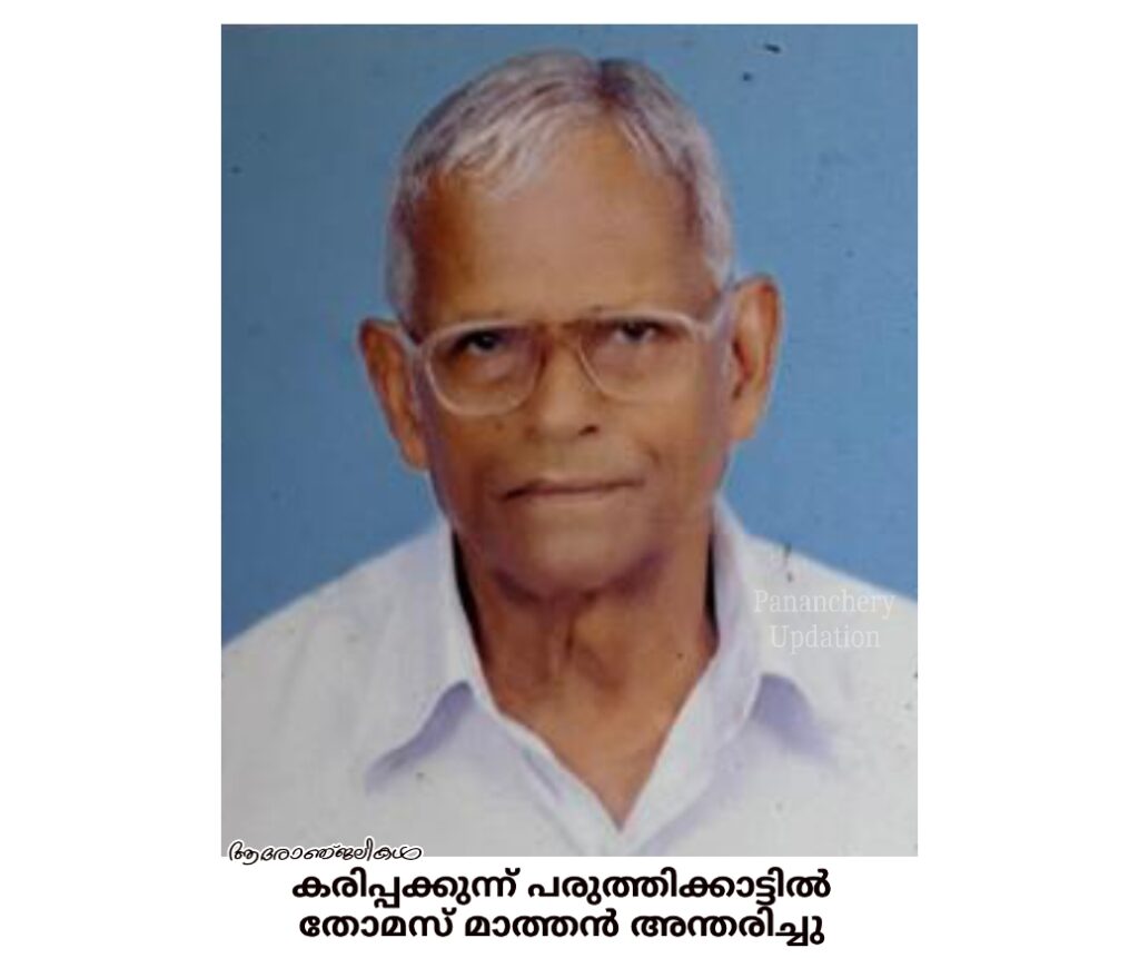 കരിപ്പക്കുന്ന് പരുത്തിക്കാട്ടിൽ തോമസ് മാത്തൻ അന്തരിച്ചു. സംസ്കാരം ( 10.05.2024 – വെള്ളിയാഴ്ച) രാവിലെ 9 മണിക്ക് ആൽപ്പാറ റ്റിപിഎം ഹാളിൽ വെച്ച് ആരംഭിക്കും. മക്കൾ: പരേതയായ മേരിക്കുട്ടി , പി ടി മാത്യു, അന്നമ്മ ജെയിംസ്, മേഴ്സി , മരുമക്കൾ: ഷീജ മാത്യു, പരേതനായ ജെയിംസ് , വിൻഫ്രഡ് മാത്യൂ