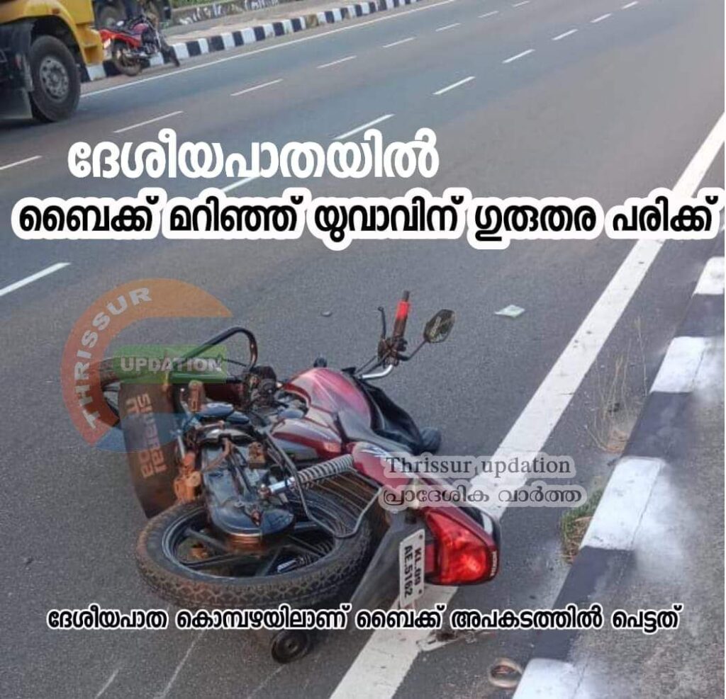 ദേശീയപാതയിൽ ബൈക്ക് മറിഞ്ഞ് ഉണ്ടായ അപകടത്തിൽ യുവാവിന് പരിക്ക്