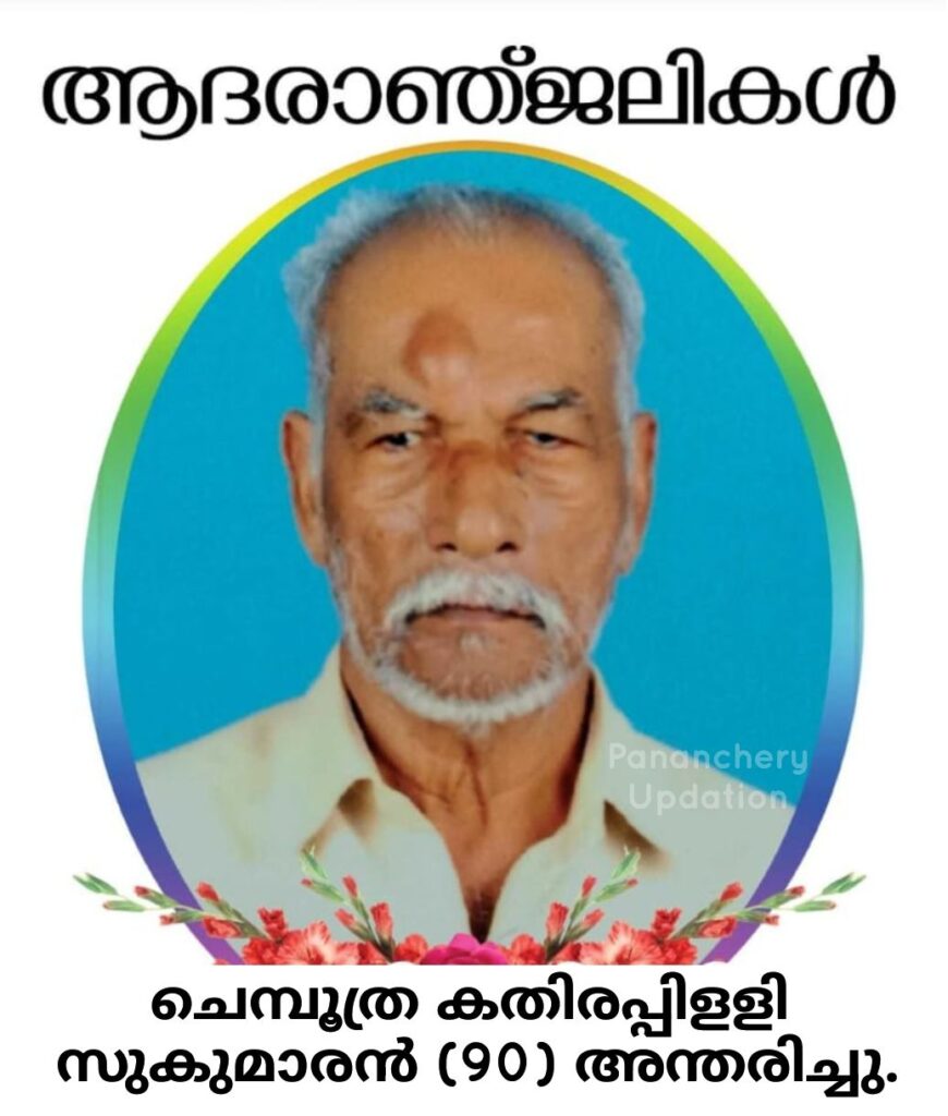 ചെമ്പൂത്ര കതിരപ്പിളളി പരേതനായ കുഞ്ഞിരാമൻ മകൻ സുകുമാരൻ (90) അന്തരിച്ചു. സംസ്കാരം (13.05.2024 – തിങ്കൾ) ഉച്ചതിരിഞ്ഞ് 02.00 ന് വടക്കുംപാടം ആത്മാലയത്തിൽ