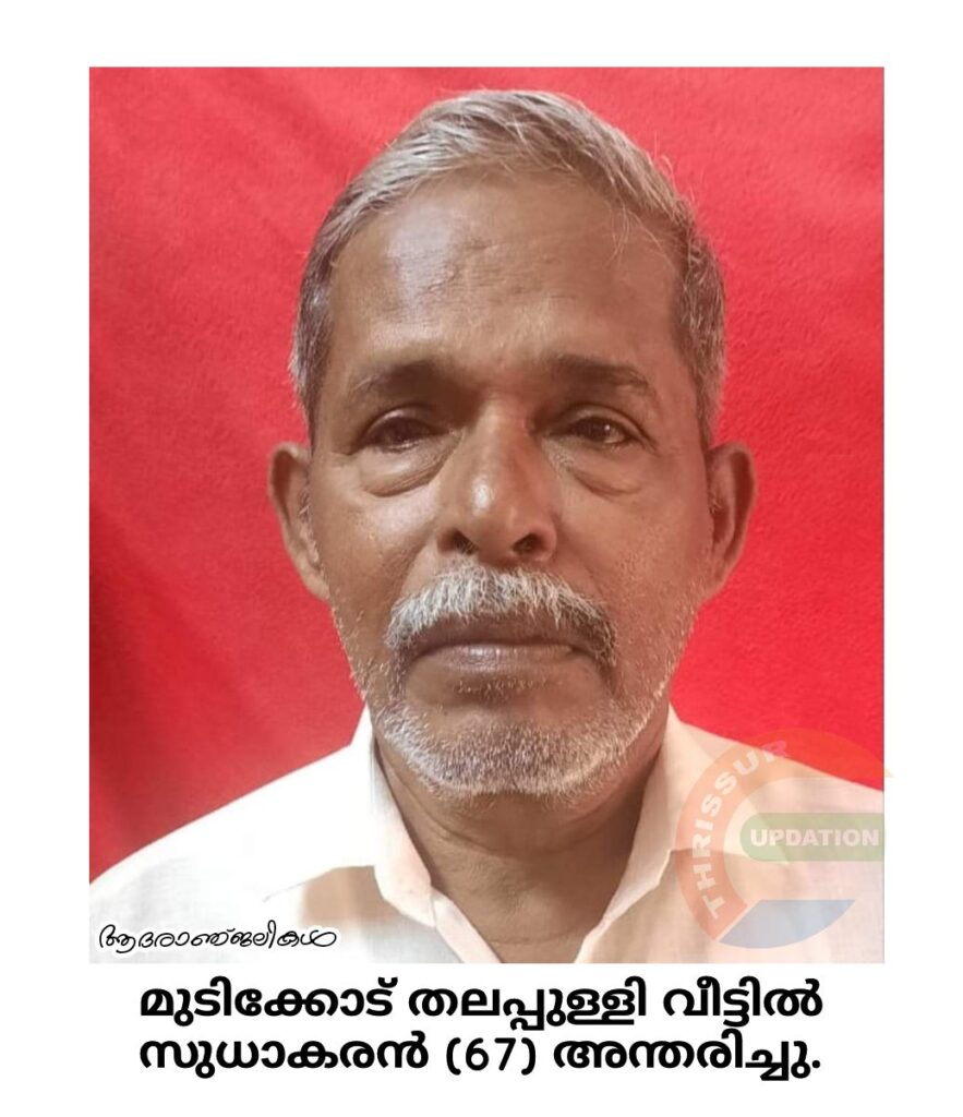 മുടിക്കോട് തലപ്പുള്ളി വീട്ടിൽ സുധാകരൻ (67) അന്തരിച്ചു. സംസ്കാരം ഇന്ന്(14.05.2024) (ചൊവ്വാഴ്ച) രാവിലെ 9 മണിക്ക് വടക്കുംപാടം ആത്മാലയത്തിൽ.